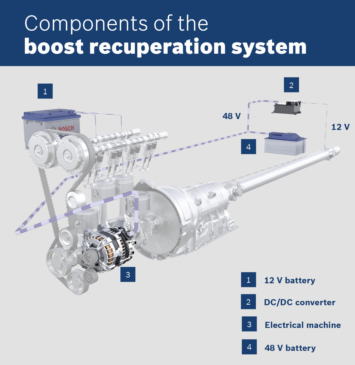 The Bosch 48-volt entry-level hybrid for light commercial vehicles enables fuel-saving coasting, while its higher power means it makes better use of energy recovery than applications based on conventional voltage levels.