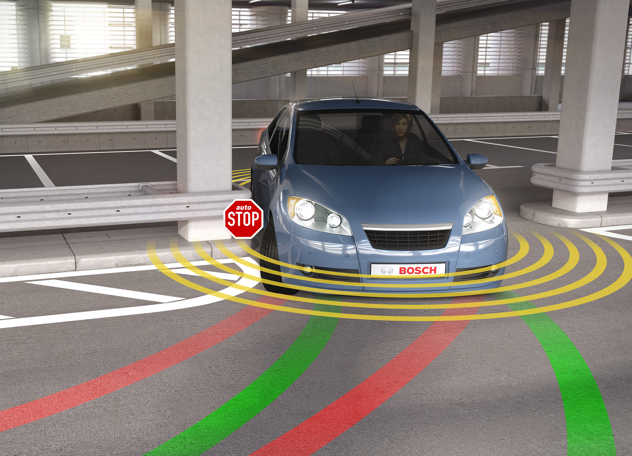 A uma velocidade de até 10 km/h, os sensores ultrassônicos monitoram constantemente toda a área ao redor do veículo – em uma distância de até quatro metros, detectando obstáculos relevantes e não relevantes e calculando o caminho que o carro deverá percorrer.