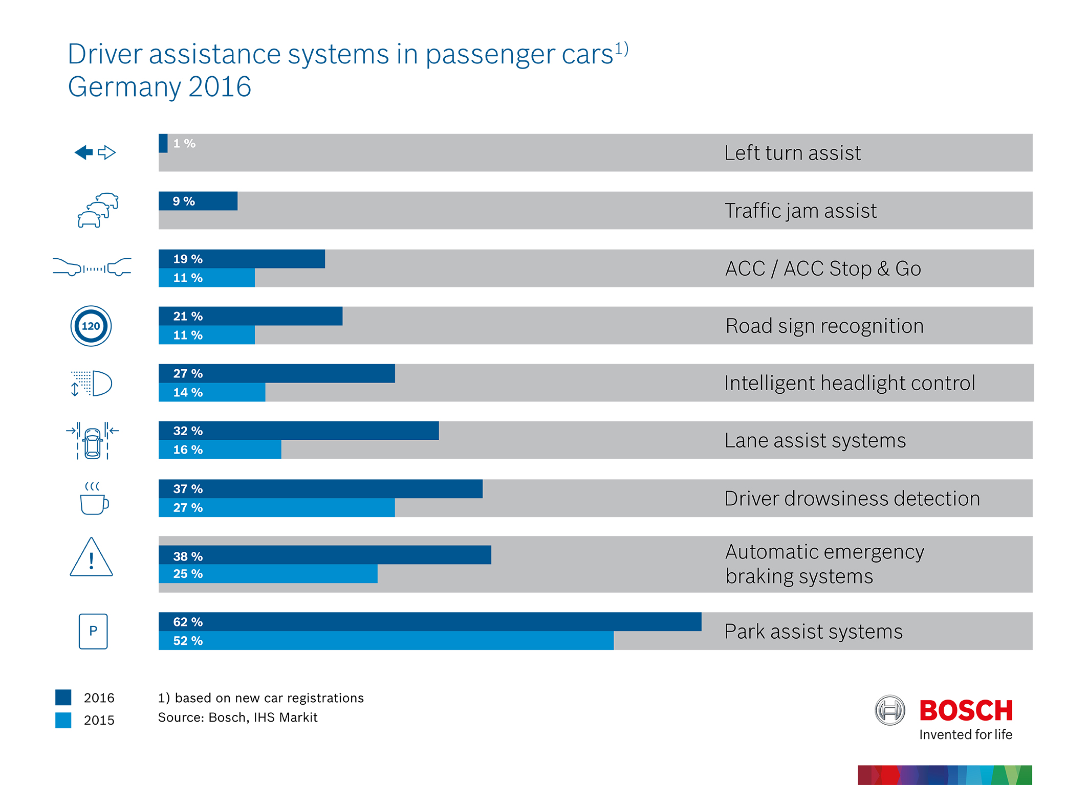 Sistemas de assistência ao condutor em veículos de passeio, em 2016
