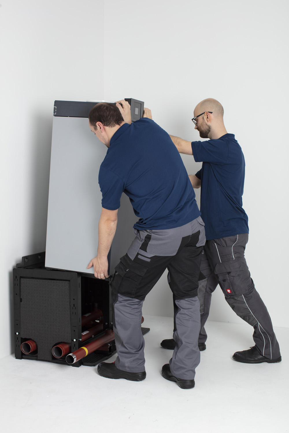 Díky své nízké výšce a hmotnosti od 74 kg je Condens 7000 WP mimořádně kompaktní. Tato vlastnost je obzvláště užitečná při montáži: Condens 7000 WP mohou na určené místo rychle a bez námahy umístit dvě osoby. Pohodlné instalaci pomůže i technologie „Slide and Guide“ použitá pro způsob uchycení do montážního rámu. K sestavení sofistikovaných kaskádových jednotek je potřeba jen minimum nářadí. V porovnání s předchozími kaskádovými jednotkami ušetří instalatérská firma při montáži přibližně polovinu času – instalace kaskády dvou jednotek totiž zabere pouhých 30 minut. Všechny elektrické a ovládací komponenty kompaktního plynového kondenzačního kotle jsou přístupné v ergonomické výšce.