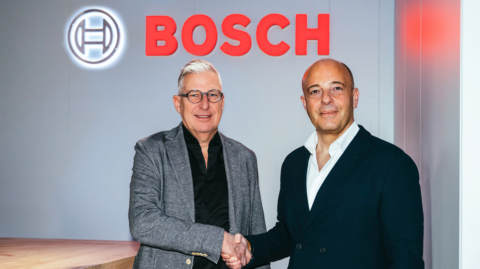 Dr. Johannes-Jörg Rüger und Cosimo De Carlo bekräftigen die Zusammenarbeit zwischen Bosch Engineering und der EDAG Group.
