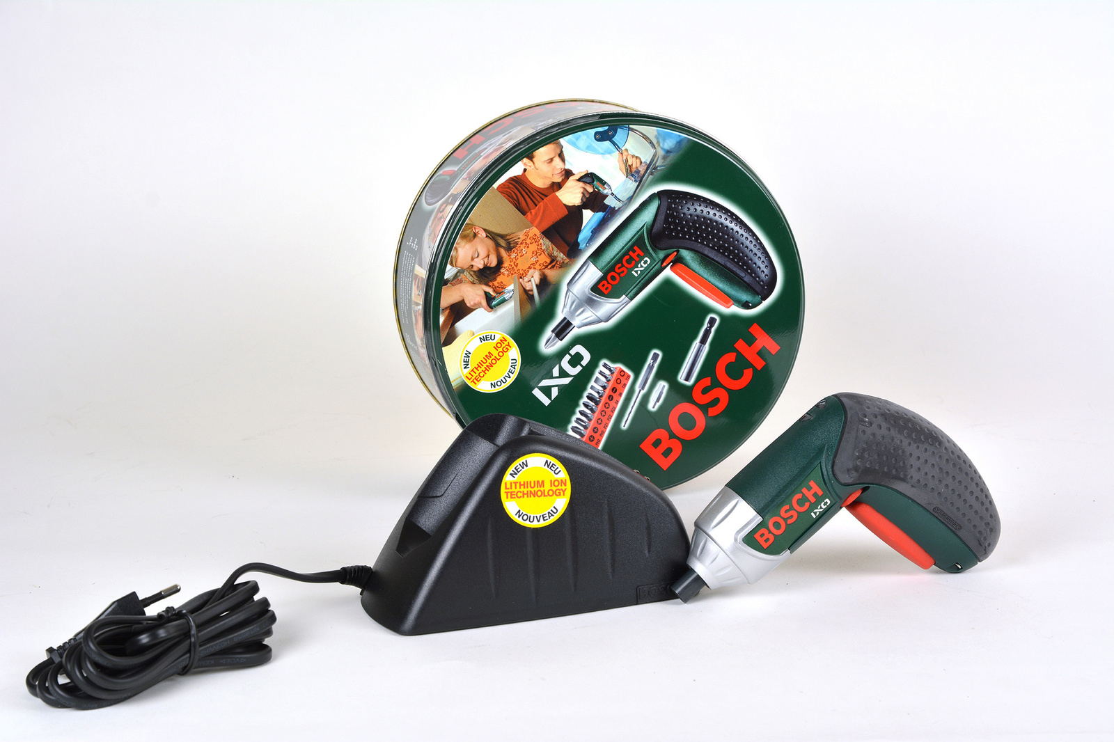„Ixo“, weltweit erster Akku-Schrauber mit Lithium-Ionen-Akku. Mit dem „IXO“ bietet Bosch seit 2003 den damals weltweit ersten Akku-Schrauber mit Lithium-Ionen-Akku an. Das Metier des handlichen, innovativen Geräts sind die vielen kleinen Schraub- und Montagearbeiten im Haushalt. Ein Vorteil des neuen Akkus gegenüber den bisher üblichen NiCd-Akkus ist die sehr geringe Selbstentladung. Einmal aufgeladen, steht der größte Teil der Energie selbst nach einem Jahr ohne Gebrauch noch zur Verfügung, und der „IXO“ ist immer einsatzbereit. Außerdem gibt es bei Lithium-Ionen-Akkus keinen Memory-Effekt. Die Akkukapazität bleibt somit immer gleich. Günstig ist auch die besonders kleine Bauweise der Akkuzellen, die etwa 30 bis 40 Prozent leichter sind als vergleichbare NiCd-Zellen. Der „IXO“ wiegt insgesamt lediglich 300 Gramm.