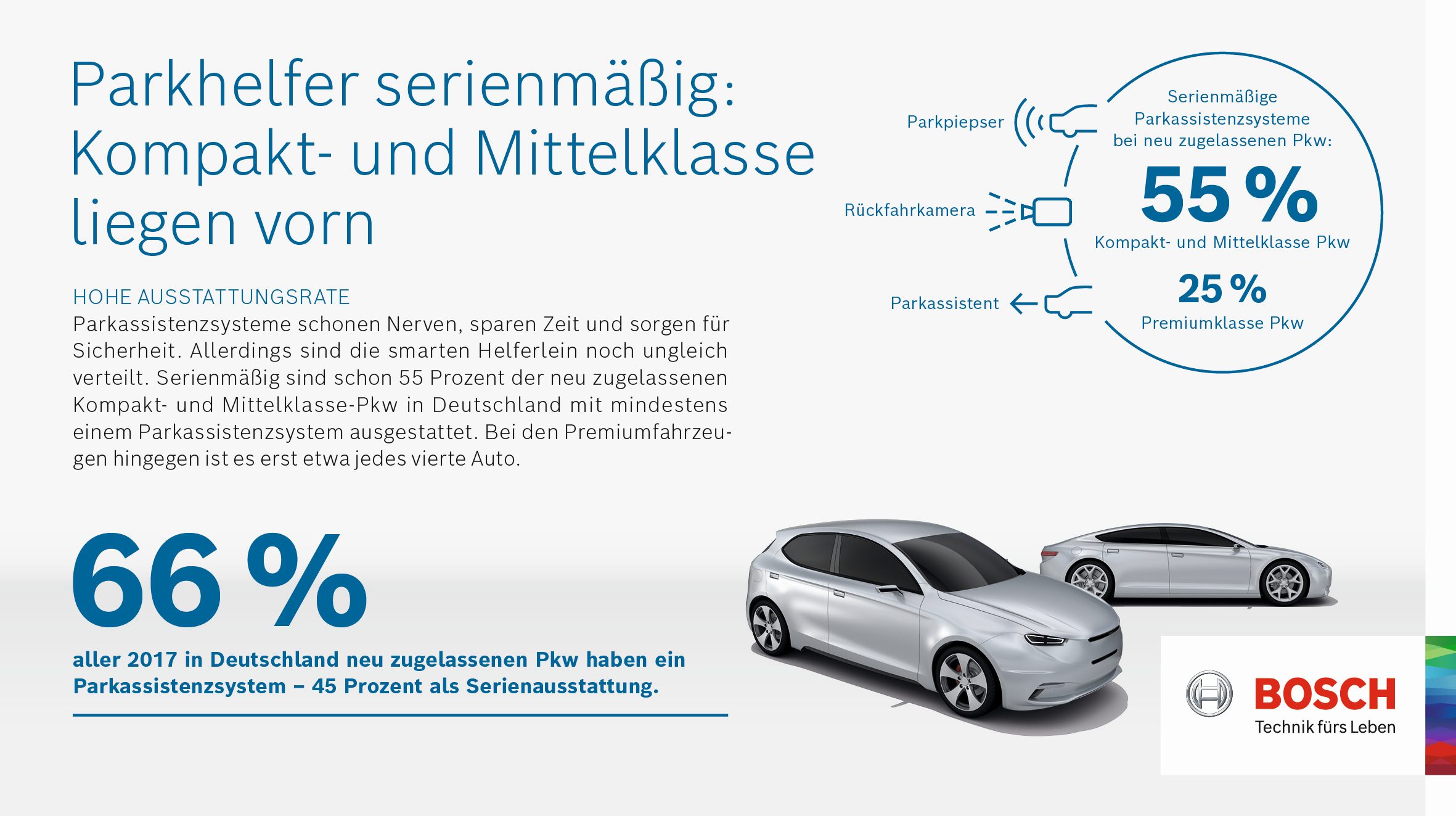 Schlaue Parkhelfer sind nicht etwa in Premium-Fahrzeugen serienmäßig am häufigsten zu finden. Weit gefehlt: Kompakt- und Mittelklasse-Autos sind hier besser ausgestattet.