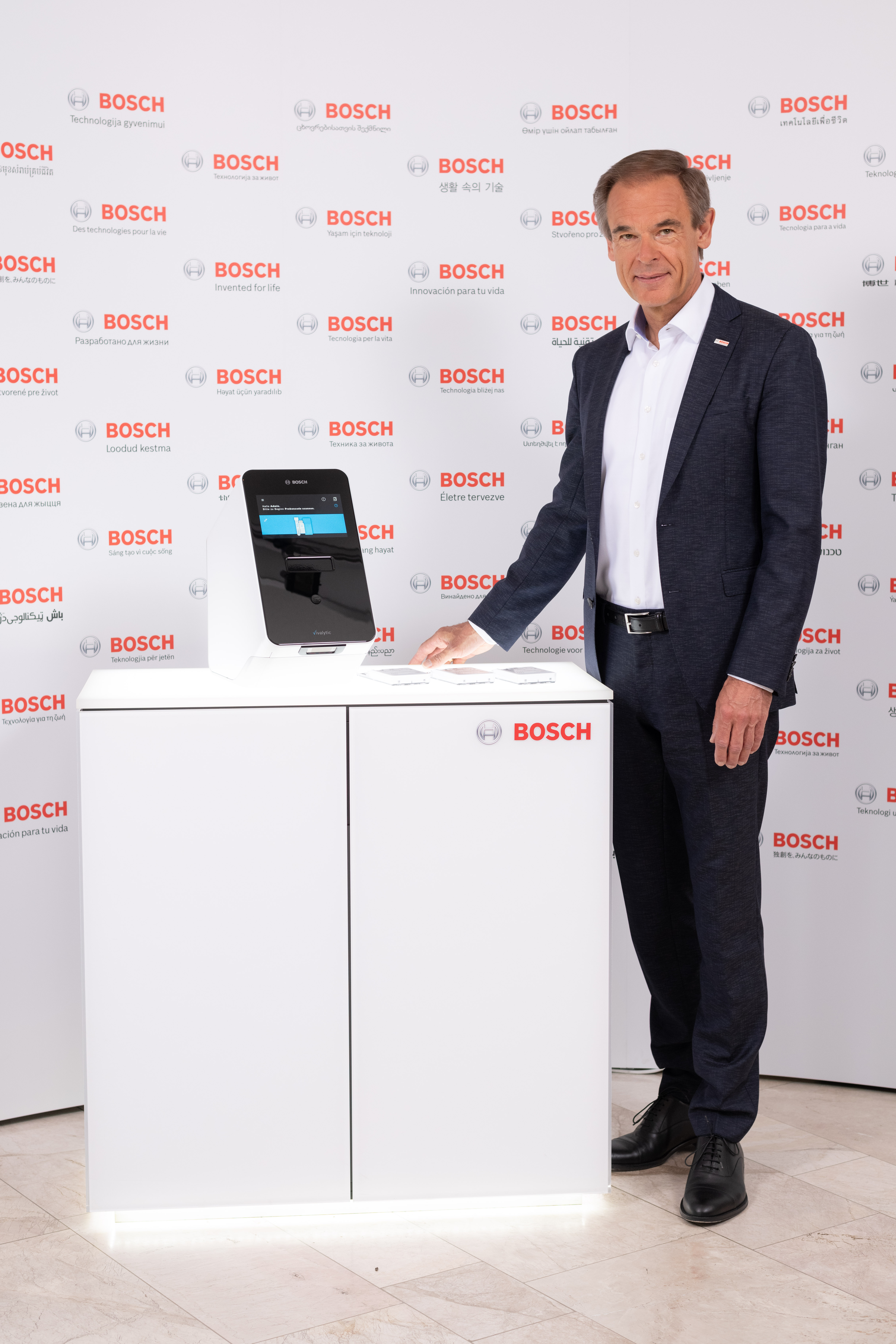 Das Technologie- und Dienstleistungsunternehmen Bosch will sich mit seinem Know-how in die Anstrengungen zur Eindämmung der Pandemie einbringen. Ein neu entwickelter Covid-19-Schnelltest auf Basis des Analysegeräts Vivalytic soll ergänzend zu den bisherigen Labortests zunächst in Krankenhäusern und Arztpraxen und dort vor allem zum Schutz des medizinischen Personals eingesetzt werden, für das die rasche Verfügbarkeit der Testergebnisse in weniger als zweieinhalb Stunden entscheidend ist. „Die Nachfrage ist sehr groß. Wir tun alles, um die Produktion deutlich zu steigern und werden sie gegenüber den bisherigen Planungen bis Jahresende verfünffachen“, sagte Dr. Volkmar Denner, Vorsitzender der Geschäftsführung der Robert Bosch GmbH. Ein noch schnellerer Test, der in weniger als 45 Minuten eine Covid-19-Erkrankung verlässlich ermitteln kann, befindet sich in der Endphase der Entwicklung.