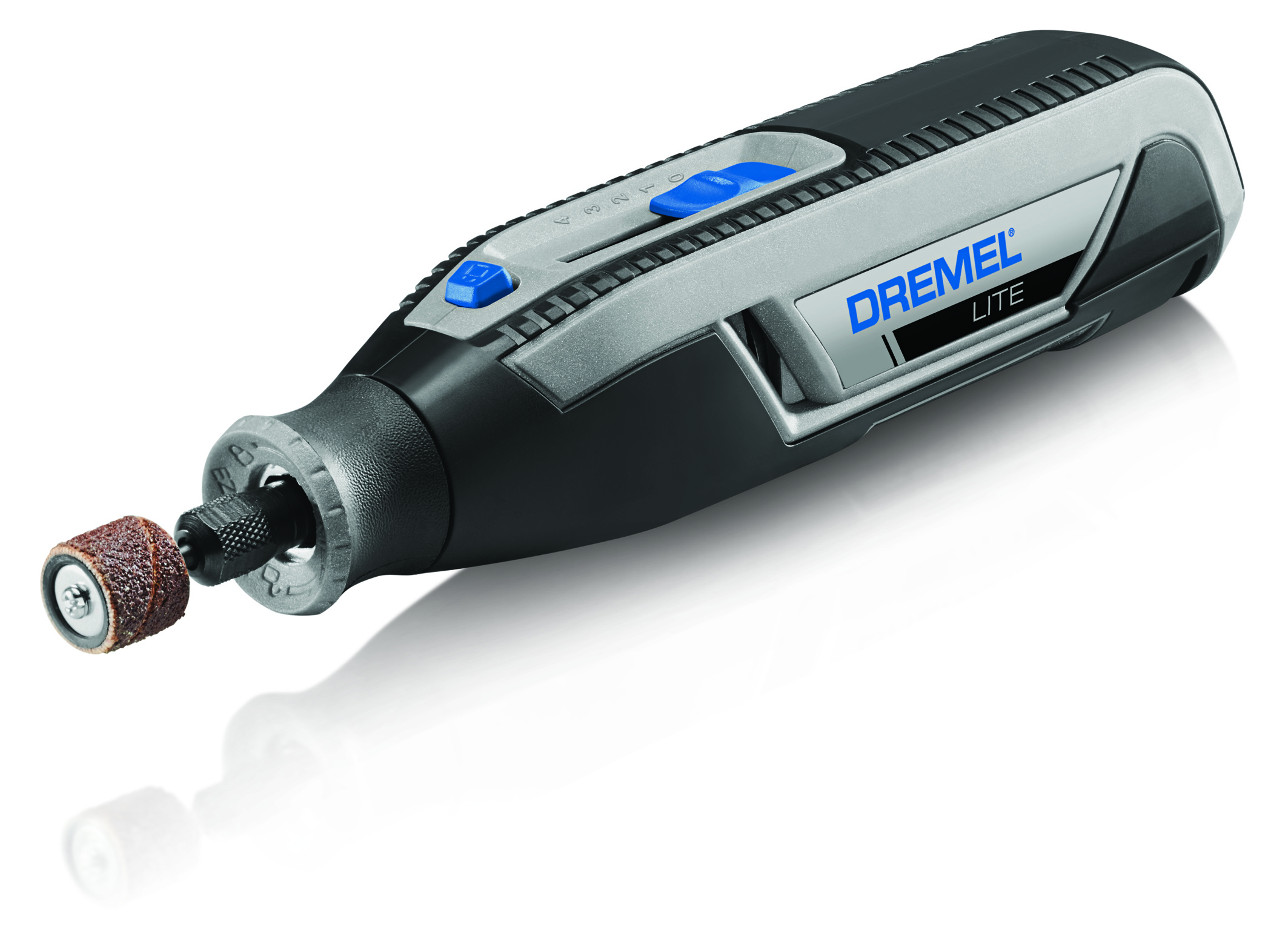 Noch kontrollierter schmirgeln, schleifen, schärfen, polieren, reinigen, gravieren oder schnitzen – für alle diese Aufgaben steht jetzt der optimierte kabellose Dremel Lite bereit. Das Multifunktionswerkzeug wurde gegenüber seinem Vorgänger Dremel 7750 auf Basis von 1 200 Verwender-Rückmeldungen verbessert und zeichnet sich durch eine höhere Ergonomie und ein besonders nutzerfreundliches und intuitives Bedienkonzept aus. Mit seinem kompakten Design, einem Gewicht von nur 270 Gramm und einem komfortabel geformten Griff mit Softgrip-Oberfläche liegt der Dremel Lite besonders bequem in der Hand.