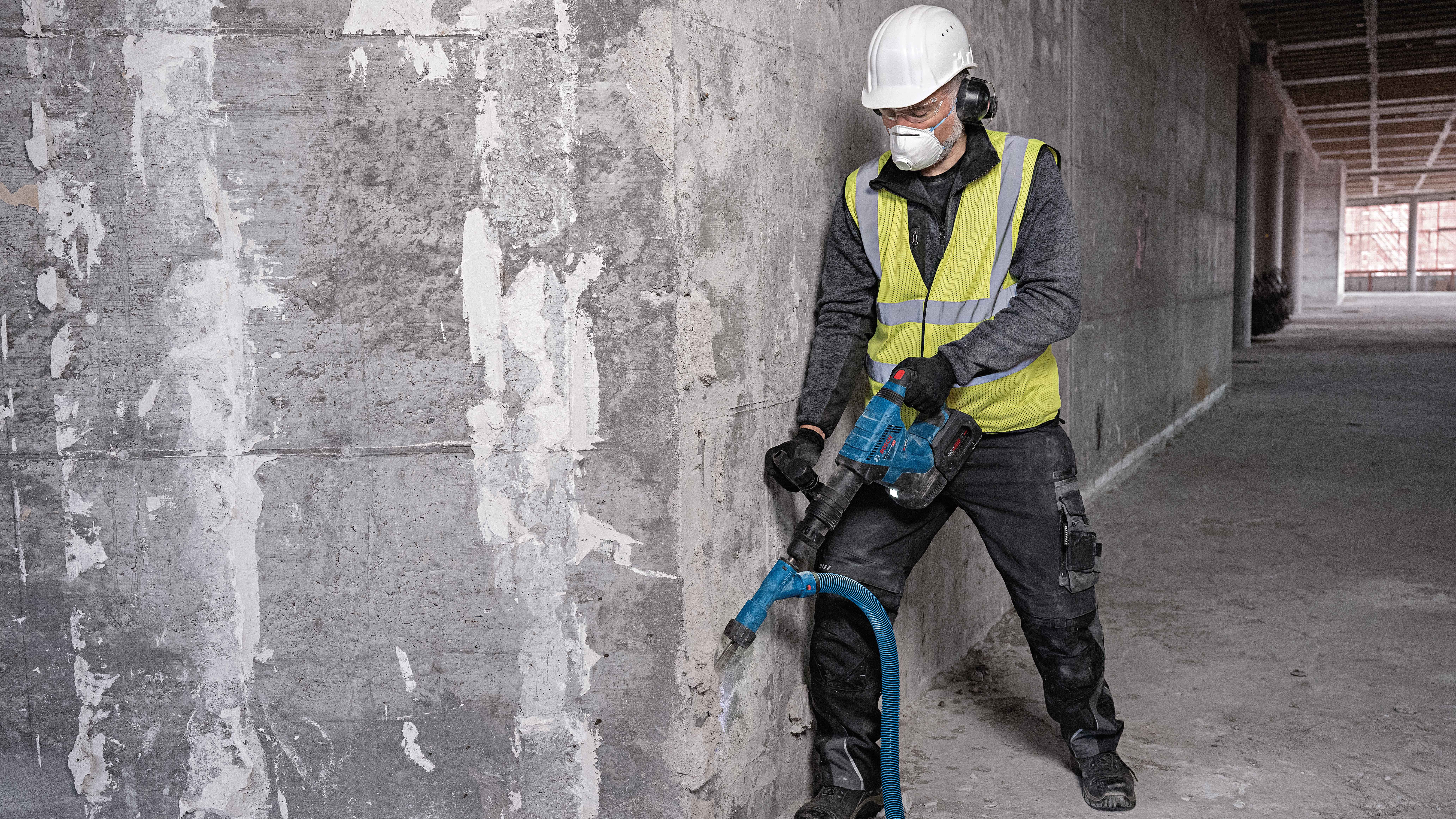 Der GSH 18V-5 Professional ist dank verbessertem Schlagwerk mit höherer Schlagenergie und reduziertem Gewicht des Antriebsstrangs der leichteste und kompakteste Akku-Schlaghammer der Fünf-Kilo-Klasse. Er bietet eine Schlagenergie von 8,5 Joule und liegt damit auf Augenhöhe mit vergleichbaren Kabel-Geräten wie dem GSH 5 CE Professional. Diese Leistung lässt sich am besten mit einem 12,0 Ah-Akku abrufen.