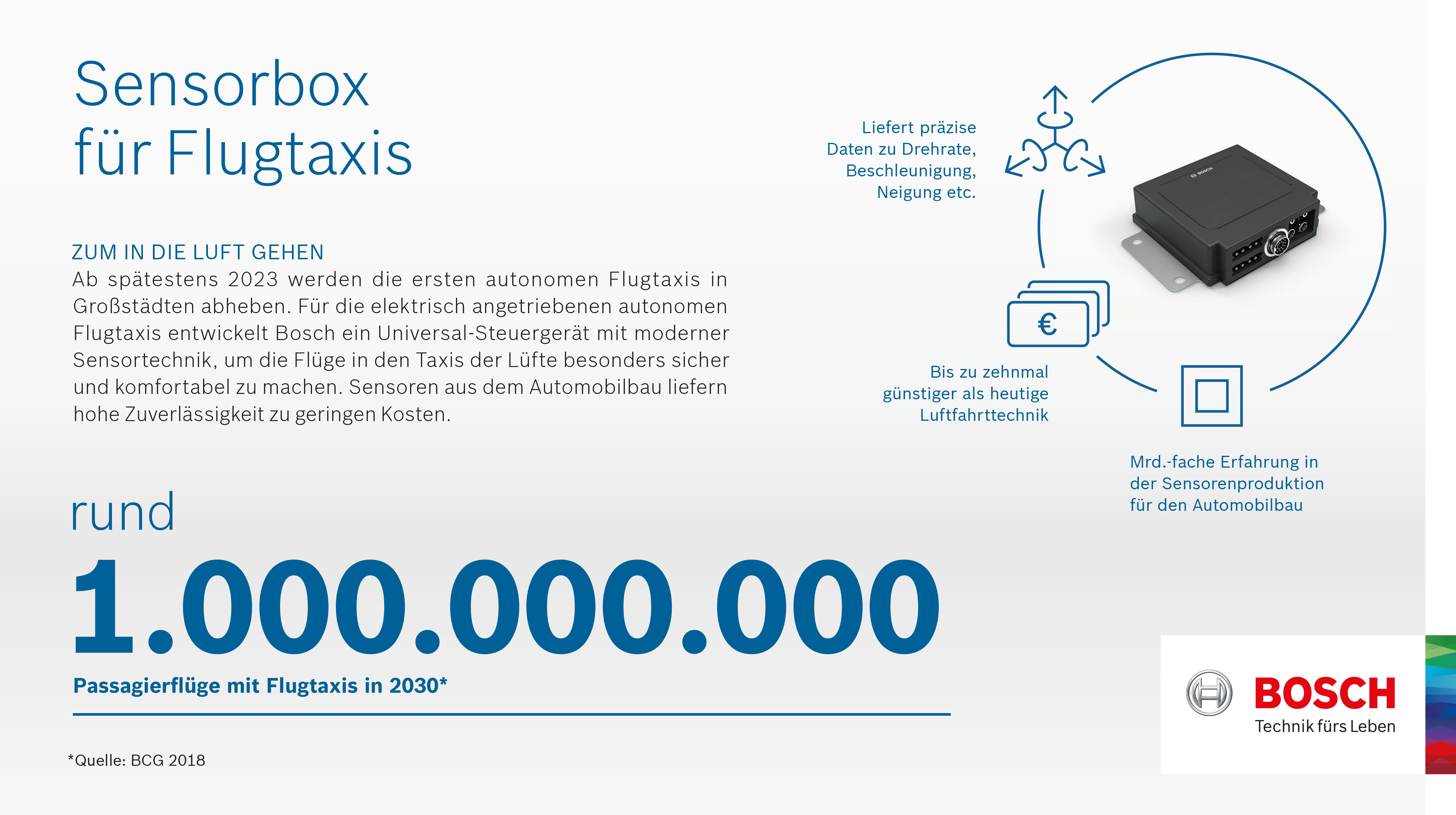 Bosch arbeitet an moderner Sensortechnik, um diese Flüge besonders sicher und komfortabel zu machen.