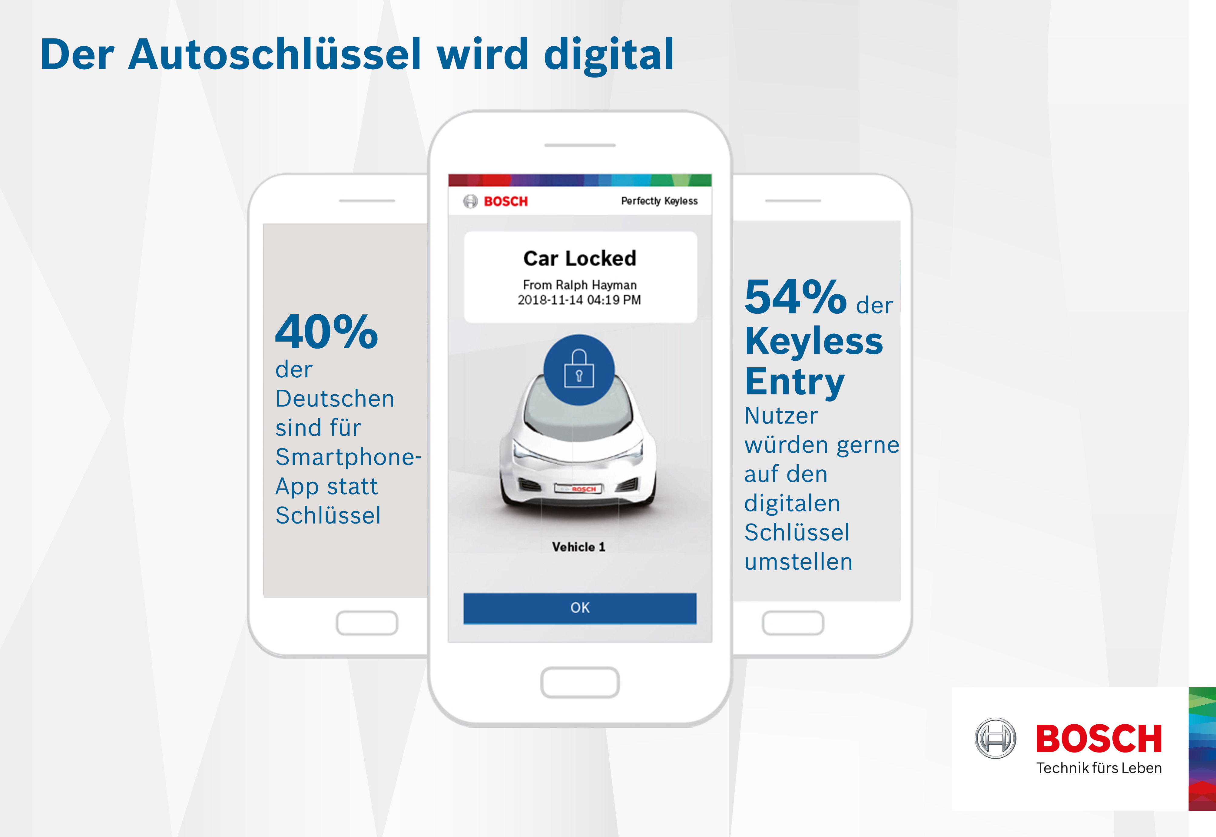 46 Prozent der befragten Männer, 32 Prozent der Frauen und jeder zweite be-fragte SUV-Fahrer begeistern sich daher für ein digitales Schließkonzept, das via Smartphone funktioniert. Besonders offen für ein solches System sind au-ßerdem Vielfahrer, die zwischen 15 001 und 20 000 Kilometer (49 Prozent) oder mehr als 20 000 Kilometer (51 Prozent) im Jahr fahren. Selbst mehr als jeder zweite Nutzer von modernen Keyless-Schließsystemen (54 Prozent) kann sich grundsätzlich vorstellen, den Schlüssel durch eine App zu ersetzen.