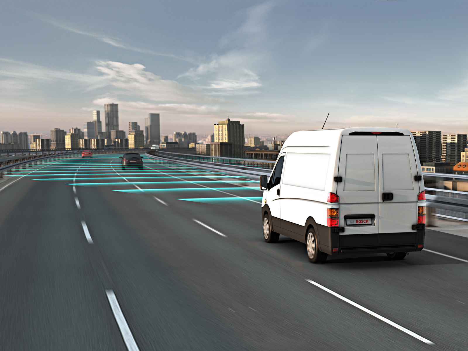 Für leichte Nutzfahrzeuge bietet Bosch den Mittelbereichsradarsensor Front (MRR front) an. Auf Basis des MRR Front realisiert Bosch Fahrerassistenzfunktionen wie ein vorausschauendes Notbremssystem oder eine Adaptive Abstands- und Geschwindigkeitsregelung (ACC).