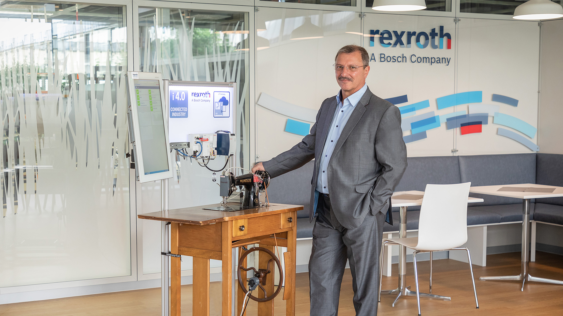 Zusammen mit seinem Team stattete Claus Lau die alte Tretnähmaschine seiner Frau mit Sensoren aus, um so die Grundzüge von Industrie 4.0 zu erklären – und wurde so als „Nähmaschinenmann von Bosch“ bekannt. Lau zeigt, wie analoge Maschinen und Produktionsanlagen für Industrie 4.0 nachgerüstet werden können – sogenannte „Retrofit“-Lösungen.