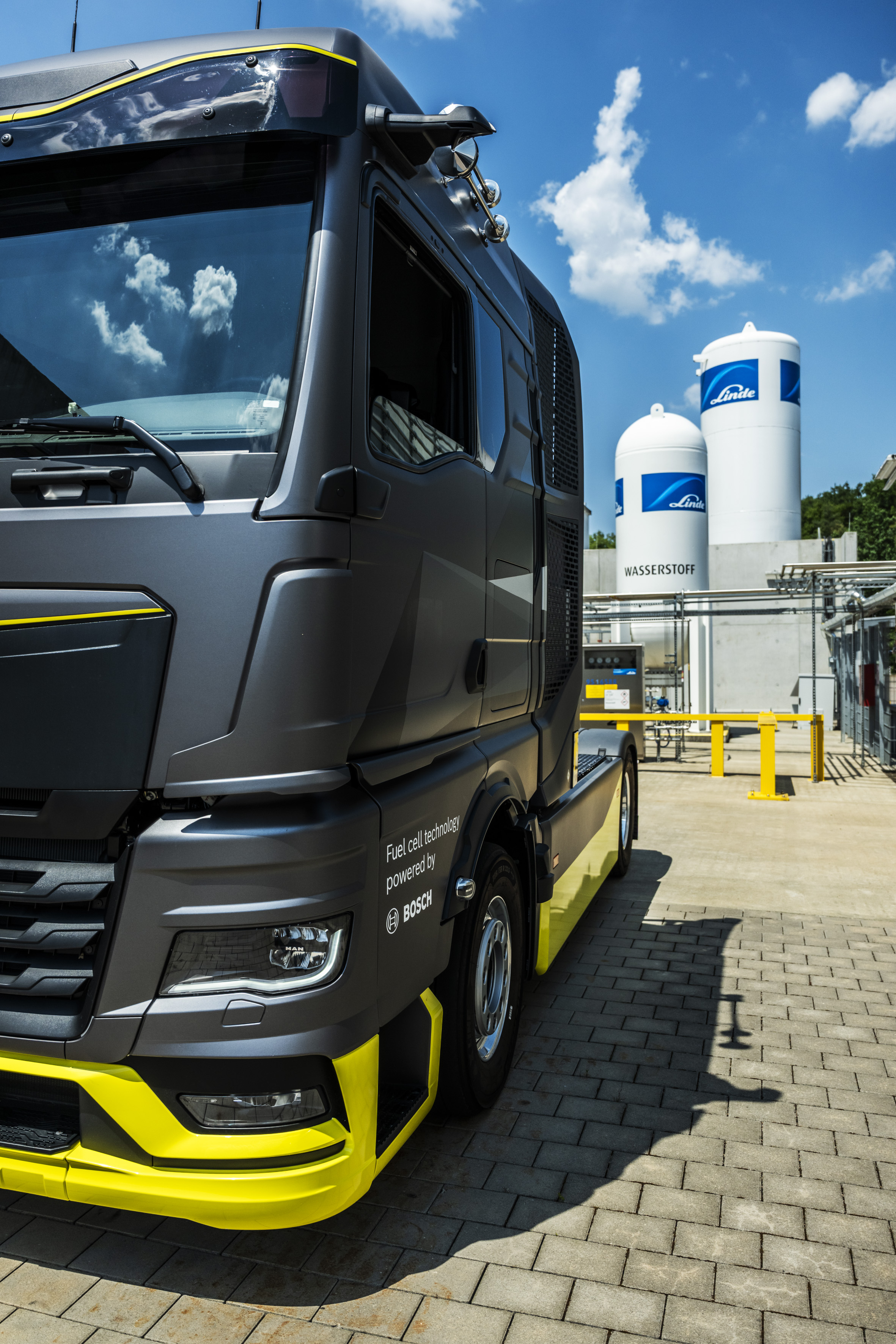Weltweit sind bereits mehrere tausend Lkw mit dem FCPM vom Bosch auf der Straße. Jedes FCPM existiert zweimal: real und als Digitaler Zwilling im virtuellen Raum. Damit erhebt Bosch gezielt Informationen zu unter anderem Temperatur, Druckverlauf, Verschleiß – und zieht daraus wichtige Erkenntnisse, die bereits in die Entwicklung der zweiten Generation eingeflossen sind.