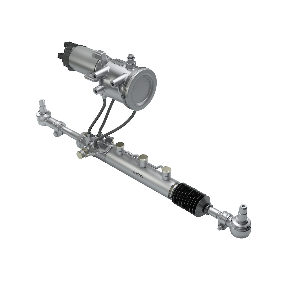Die elektro-hydraulische Hinterachs-Lenkung eRAS (electric Rear Axle Steering System) ermöglicht bei Nutzfahrzeugen mit drei oder mehr Achsen zusätzlich die Vor- oder Nachlaufachsen zu lenken. Dadurch wird der Wendekreis kleiner und der Reifenverschleiß reduziert.