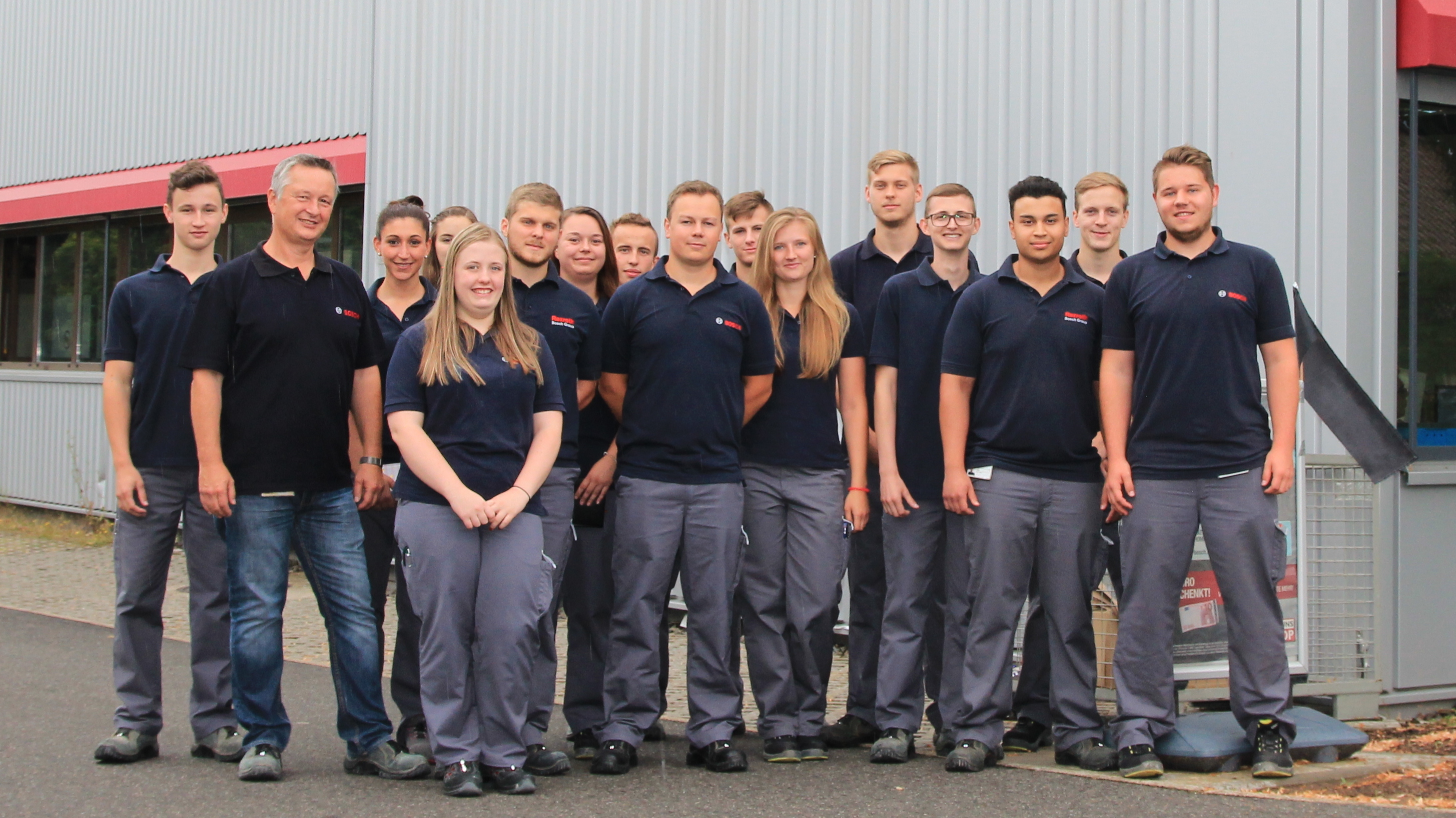 Bild: Auszubildende der technisch-gewerblichen Ausbildung am Bosch Standort Homburg mit Fred Fey, Ausbildungskoordinator Technische Ausbildung.