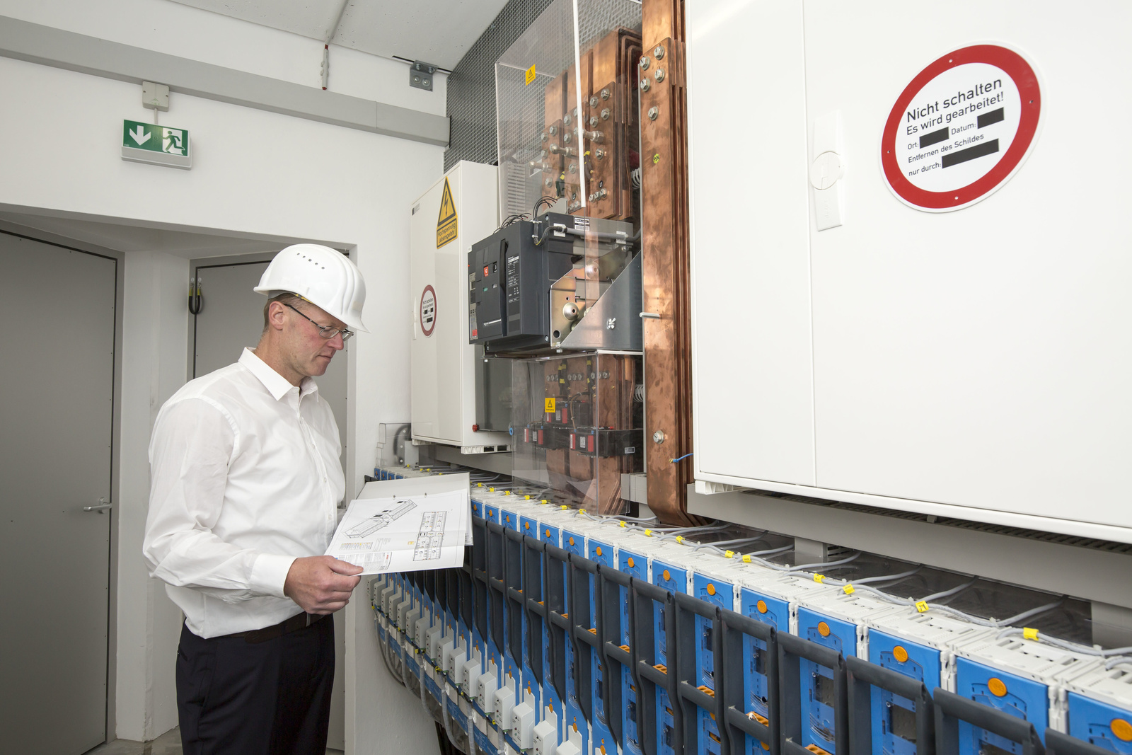 Ein zweites Leben für gebrauchte Elektroauto-Batterien: Ralf Gaudig, Technischer Projektleiter von Bosch überprüft die Anlage. Der Stromspeicher von Bosch in Hamburg enthält 2 600 Batteriemodule aus mehr als 100 Elektrofahrzeugen.