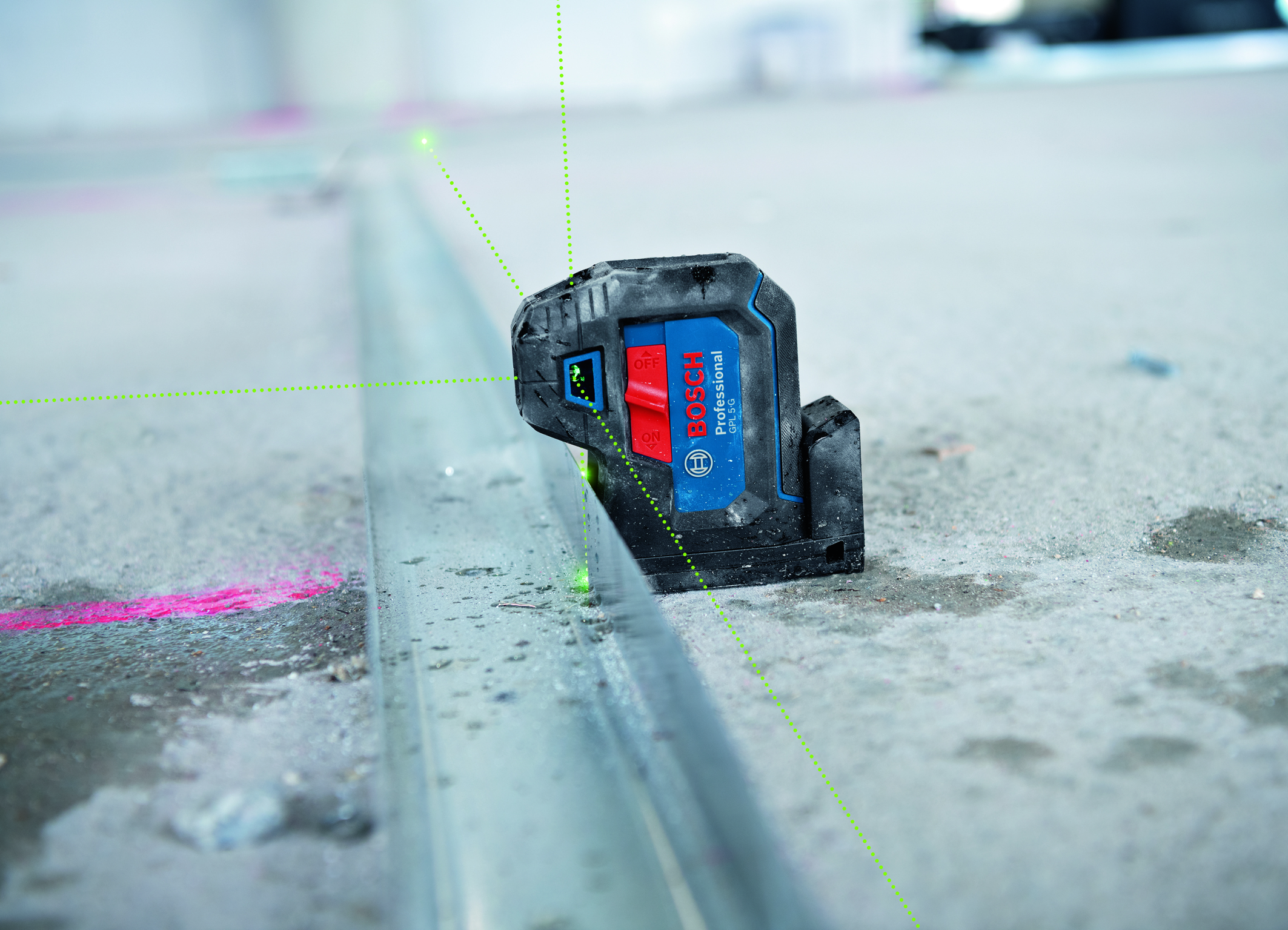 Die Punktlaser GPL 3 G Professional und GPL 5 G Professional (im Bild) bieten erstmals eine integrierte Rotationshalterung. Sie lässt sich um 360 Grad drehen, ist sehr kompakt und mit starken Magneten ausgestattet. Dadurch können die Punktlaser zum Ausrichten schnell und einfach an magnetischen Bauteilen angebracht werden. Setzt man die Punktlaser am Boden ein, sorgen ihre Gummifüße für einen stabilen Stand. Das neue Gerätedesign ermöglicht darüber hinaus eine einfachere Positionierung über U-Profilen: Die Rotationshalterung ist nach hinten versetzt, sodass der Lotpunkt des Geräts direkt über dem Profil liegt. Das erleichtert das Arbeiten zusätzlich.