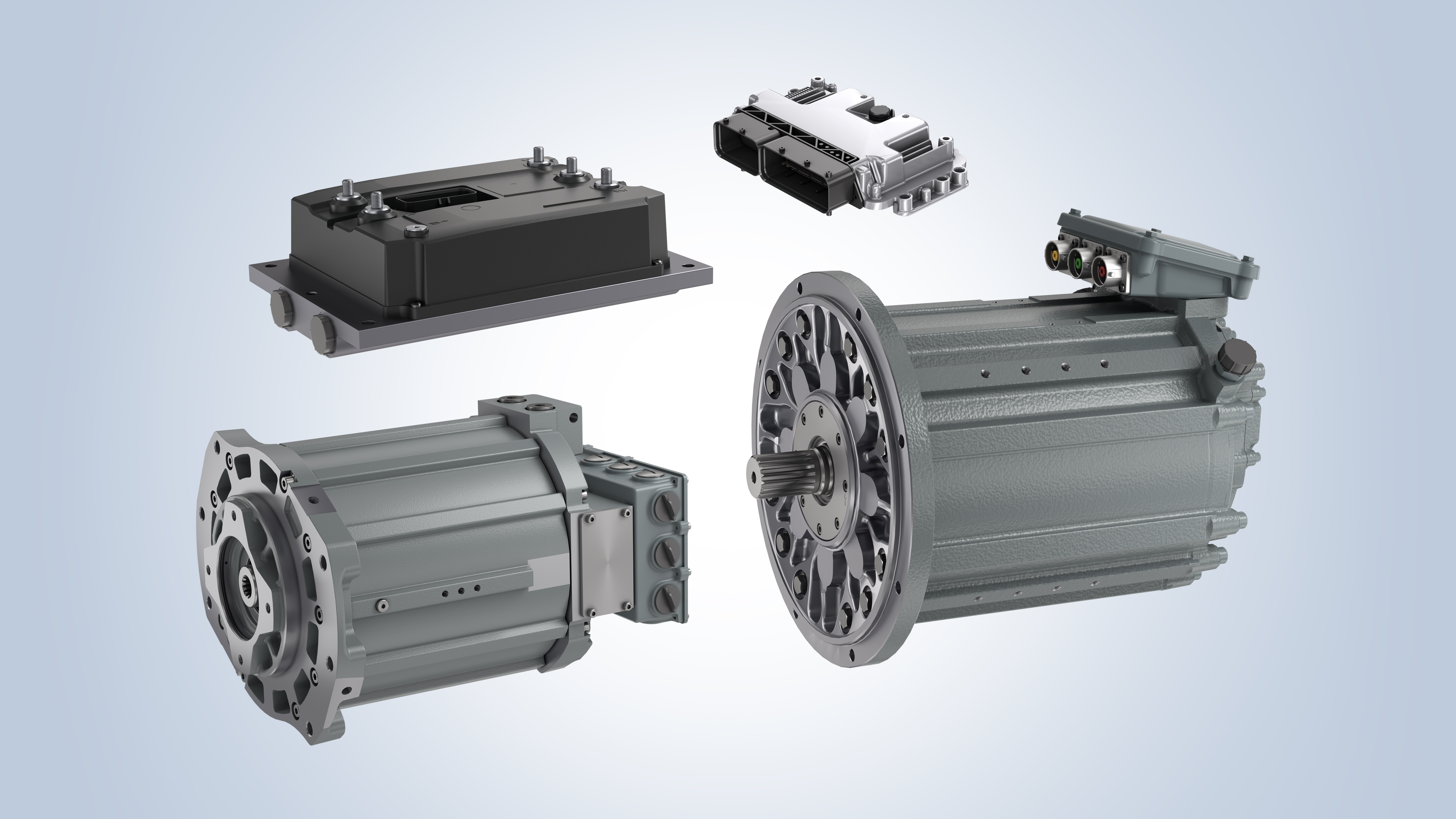 Das Rexroth Portfolio wird um die neuen leistungsstarken 96-Volt-Motoren und Inverter, die EMP1 Motoren im Hochspannungsbereich mit beeindruckender Leistungsdichte und um eine einheitliche Softwareplattform für alle Spannungsklassen erweitert.