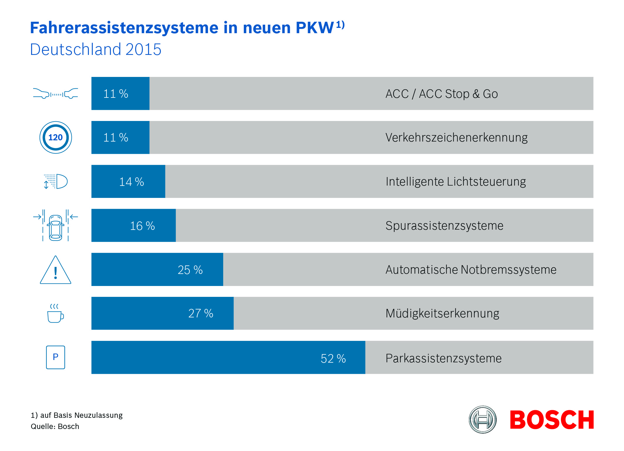 Ob beim Bremsen, Lenken oder Gas geben – Fahrerassistenzsysteme unterstützen Autofahrer in unübersichtlichen oder kritischen Verkehrssituationen beim Fahren und greifen notfalls gezielt ein. So sorgen sie für mehr Sicherheit im Straßenverkehr und dafür, dass der Fahrer stressfreier und entspannter an sein Ziel kommt.
