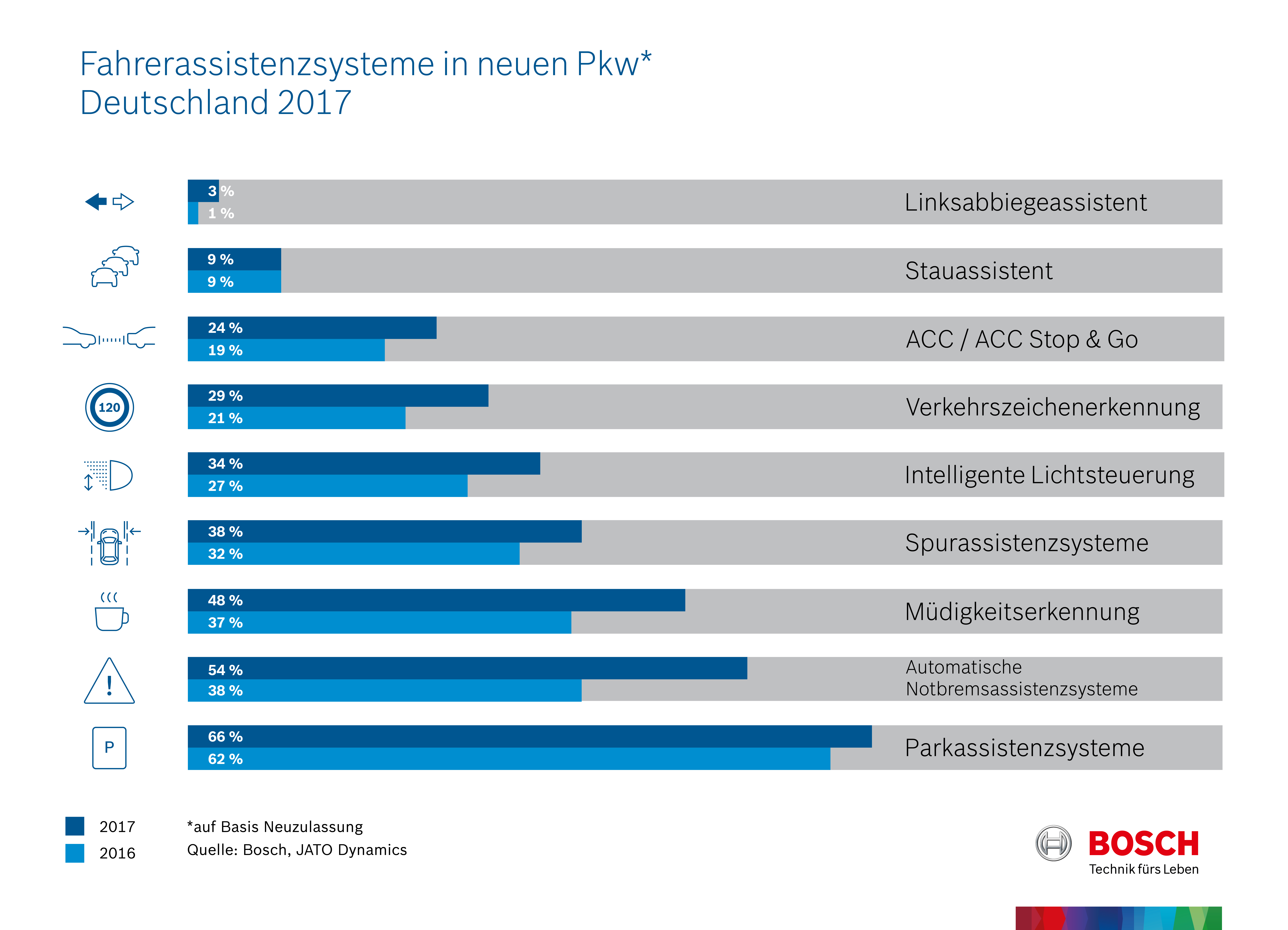 Fahrerassistenzsysteme in neuen Pkw, Deutschland 2017