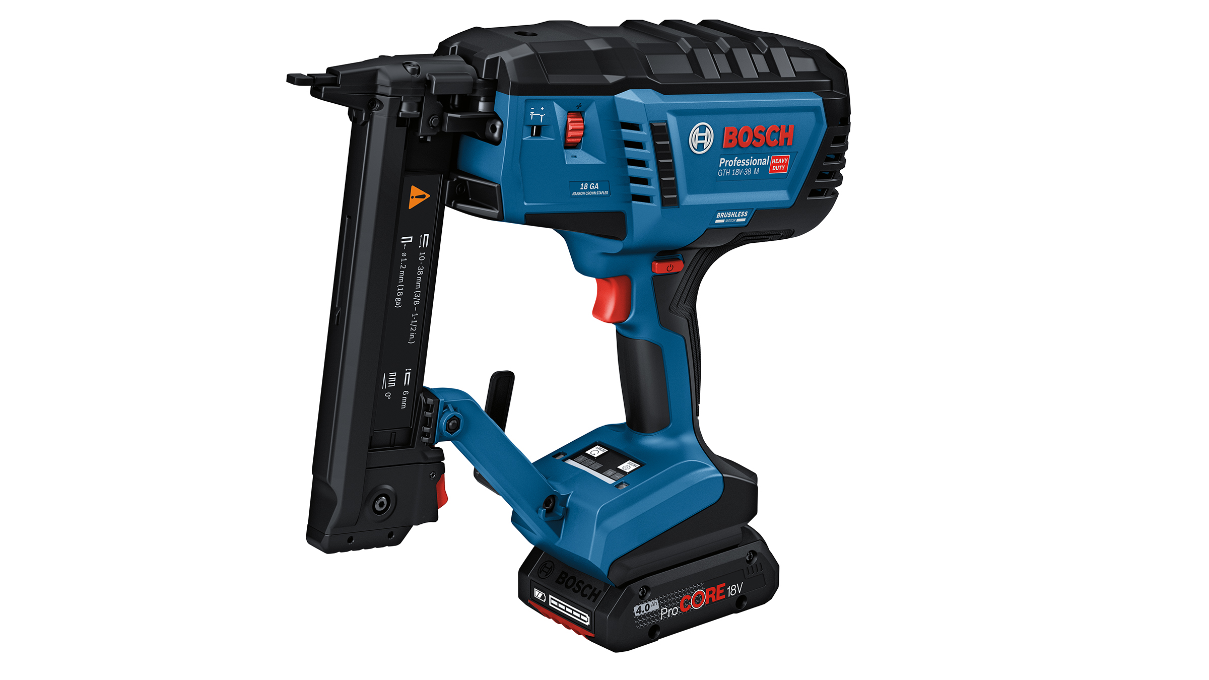 Für die präzise Befestigung von Wand- oder Deckenverkleidungen mit Nut und Feder oder für Arbeiten in der Polsterei bietet Bosch mit dem GTH 18V-38 M Professional das erste Akku-Klammergerät im „Professional 18V System“ und der herstellerübergreifenden AmpShare-Allianz. Es setzt 1,2 Millimeter starke Klammern mit einer Rückenbreite von 5,8 Millimetern und einer Länge von 9,5 bis 38 Millimetern. Für bequemes und gleichzeitig effizientes Arbeiten empfiehlt Bosch einen ProCore18V-Akku mit 4,0 Ah Kapazität. Anwender wechseln am integrierten Bedienfeld bequem zwischen dem Einzel- und dem Kontaktauslösemodus, der Serienarbeiten erleichtert.