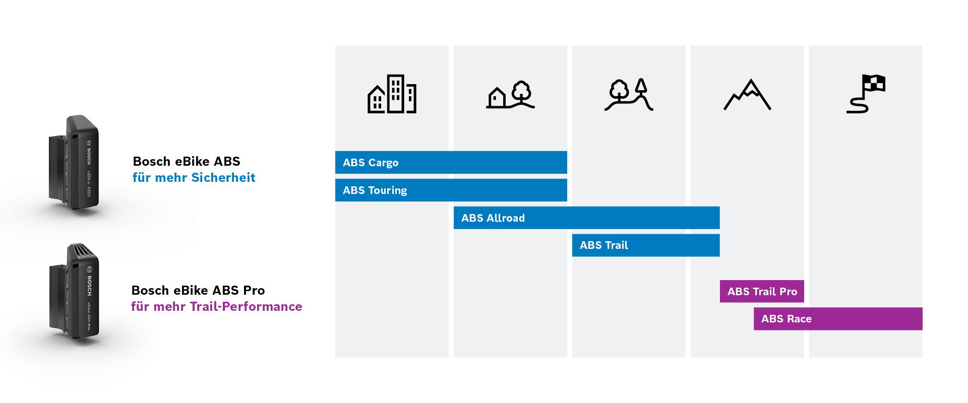 Bosch eBike Systems bietet für jede Nutzungssituation das passende ABS sowie geeignete ABS-Modi.