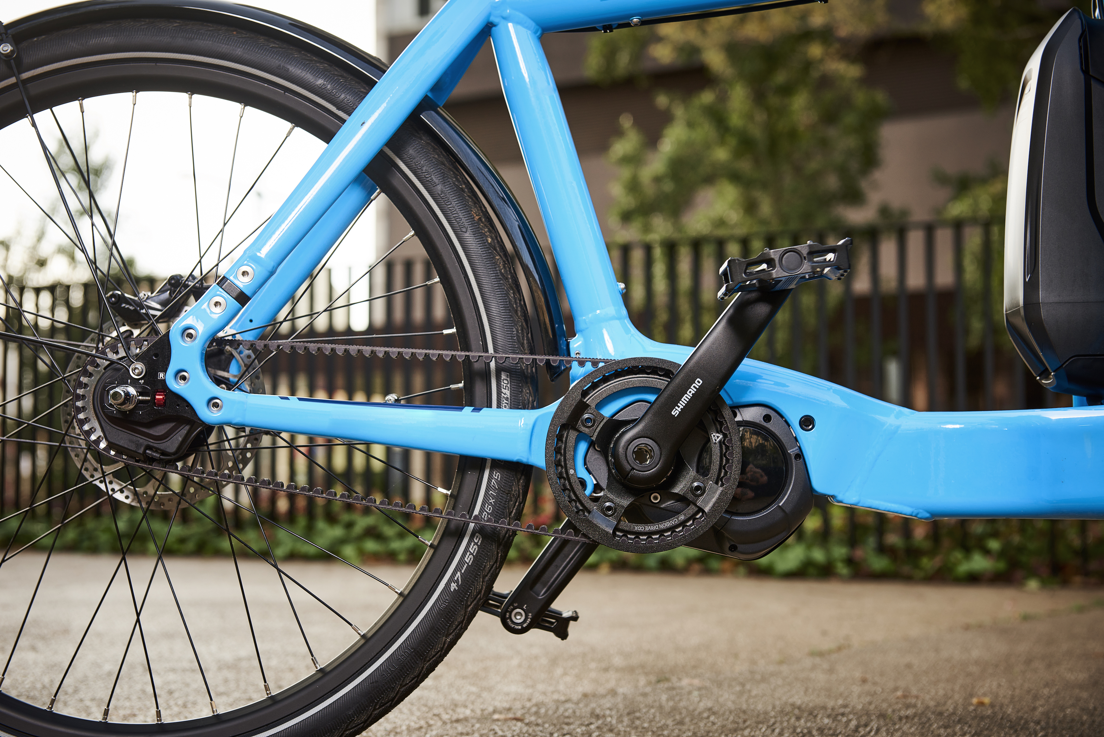 Die Nabenschaltung Shimano NEXUS Di2 mit eShift unterstützt beim manuellen Schalten und wechselt den Gang stets zum idealen Zeitpunkt, entsprechend der Pedalstellung.