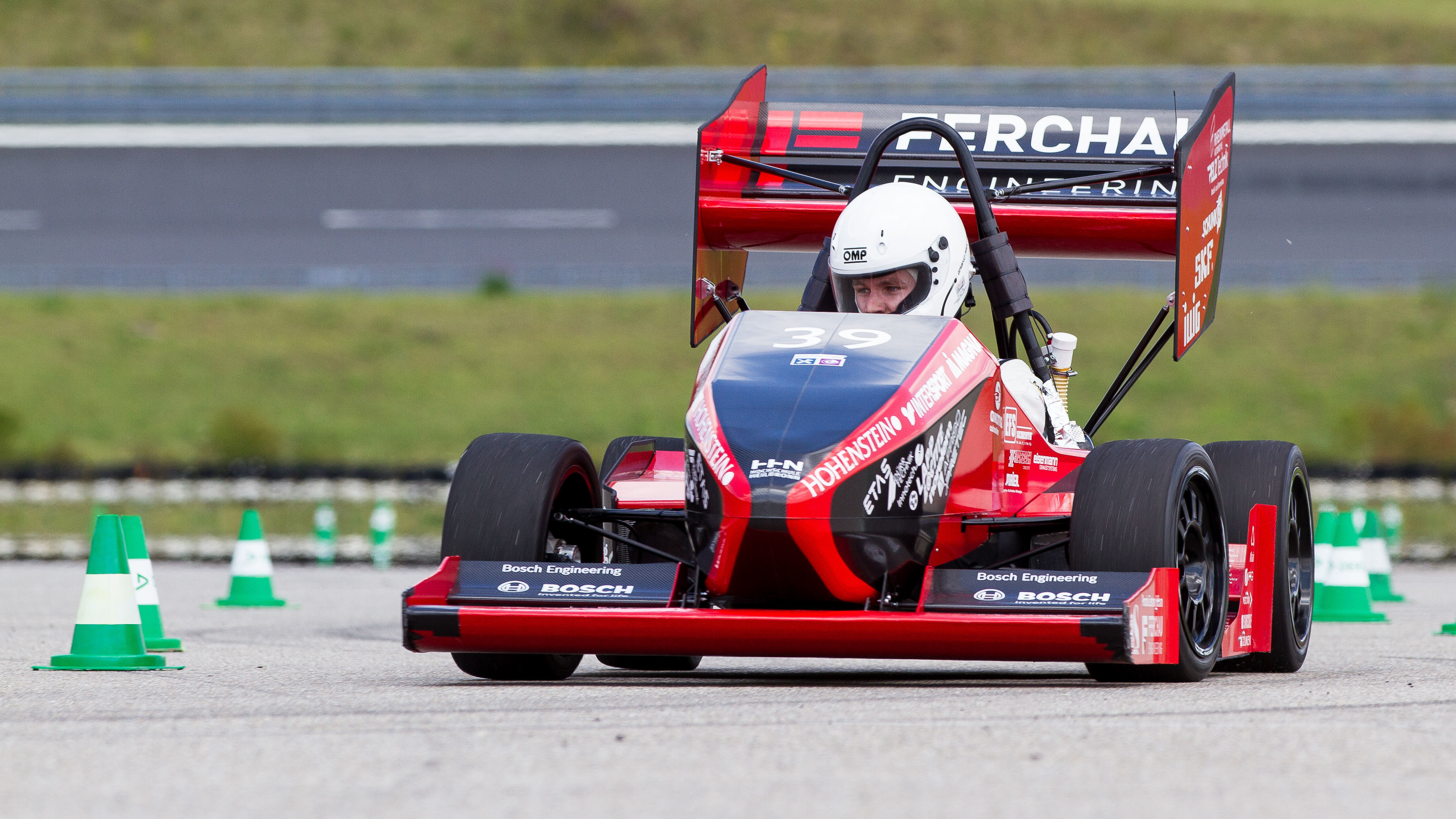 Das Formula Student HHN Racing Team der Hochschule Heilbronn testet sein Verbrenner Fahrzeug auf der Bosch-Teststrecke in Boxberg.