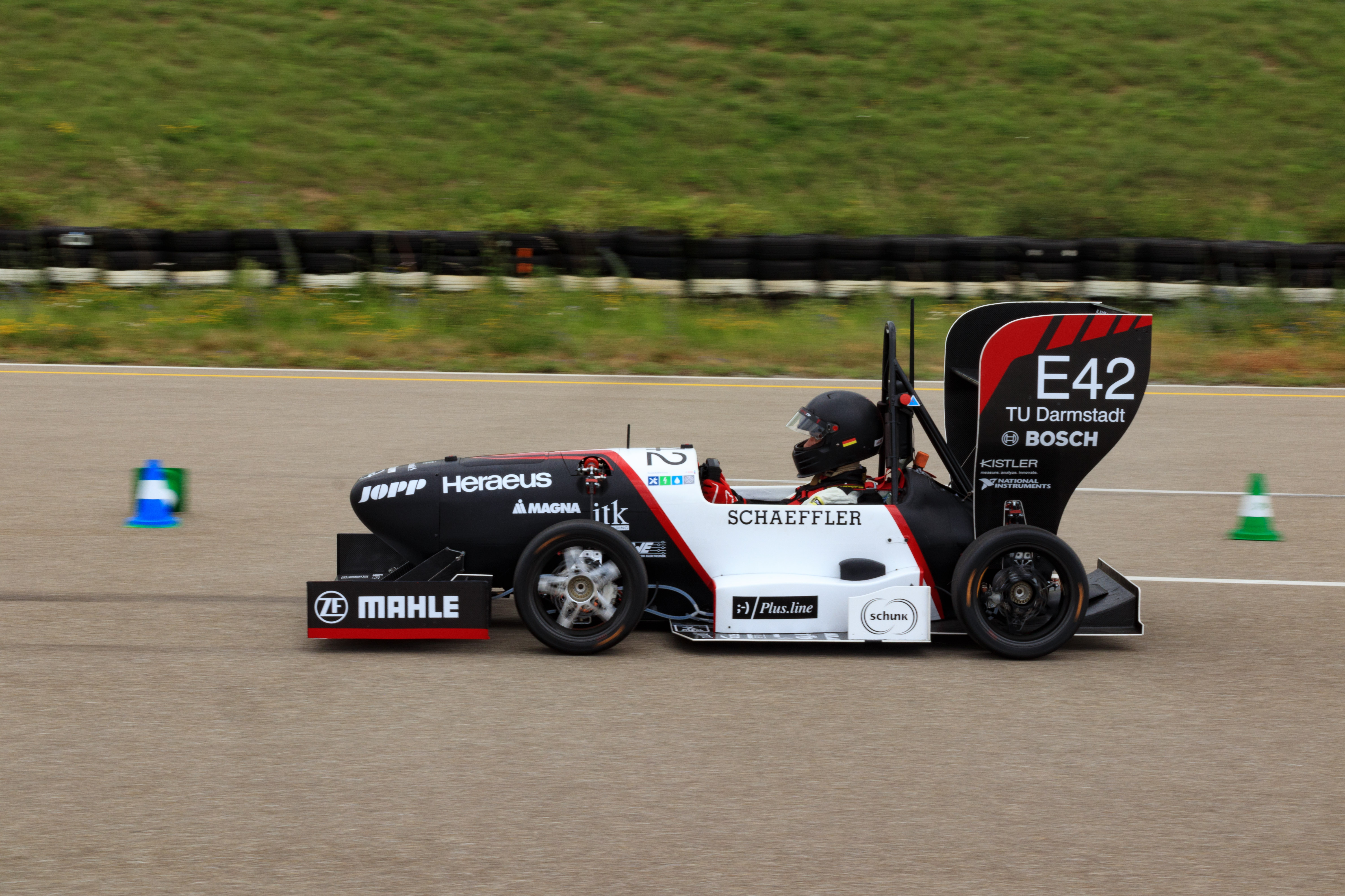 Das Team der TU Darmstadt testet sein Electric Fahrzeug auf der Bosch-Teststrecke in Boxberg.