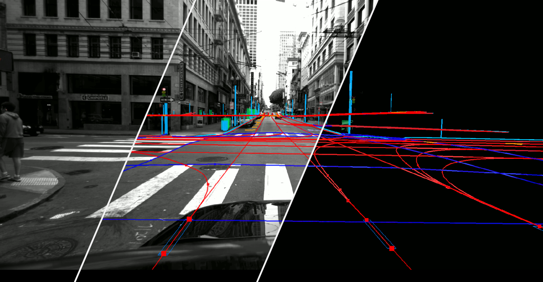 Die gesammelten Rohdaten werden auch mit Hilfe von Künstlicher Intelligenz (KI) ausgewertet und um wichtige Informationen wie zum Beispiel Verkehrsschilder, Kurvenradien sowie baulichen Besonderheiten wie Straßenbahnschienen angereichert.