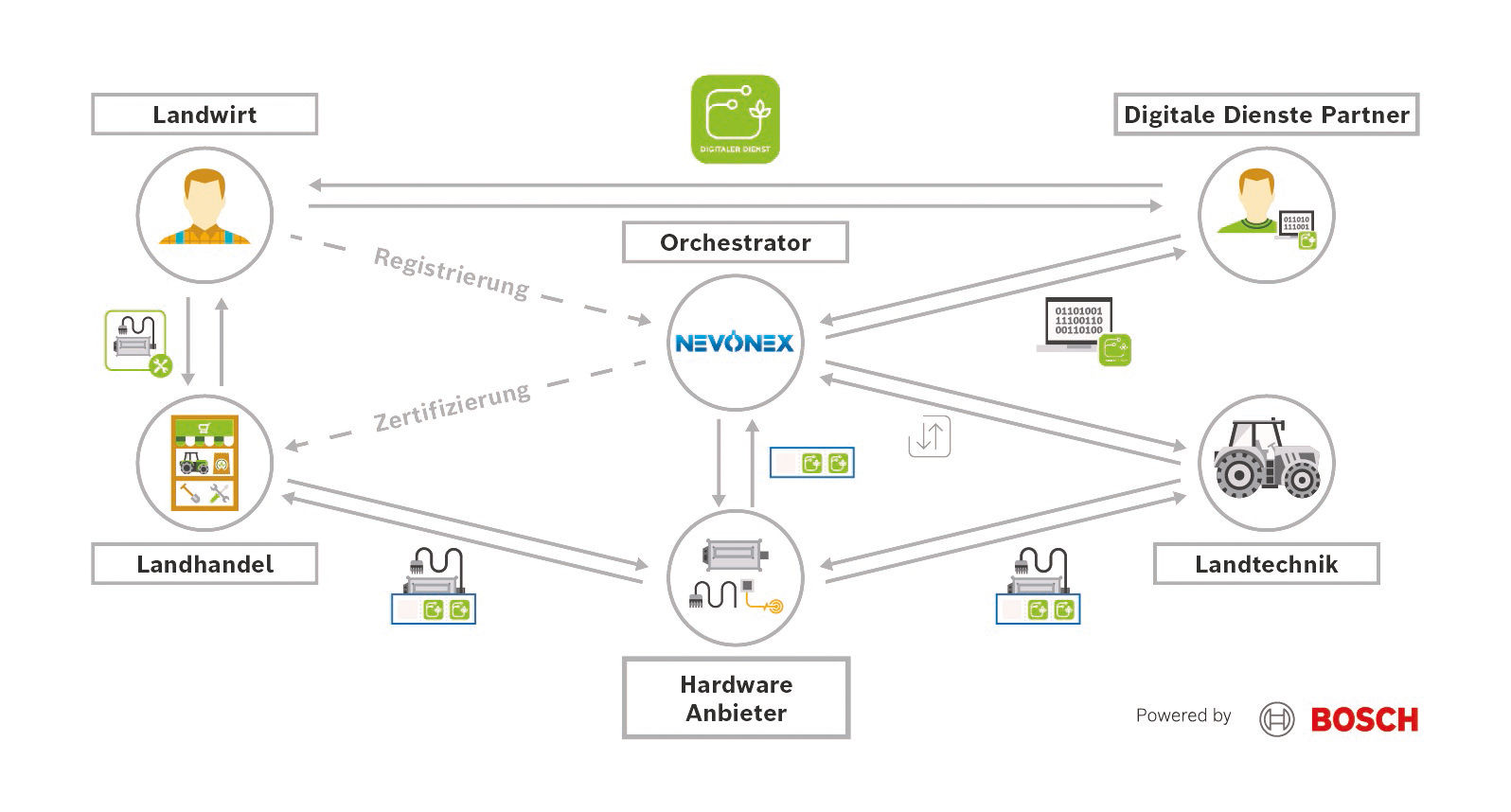 NEVONEX orchestriert die Interaktion aller beteiligten Partner.