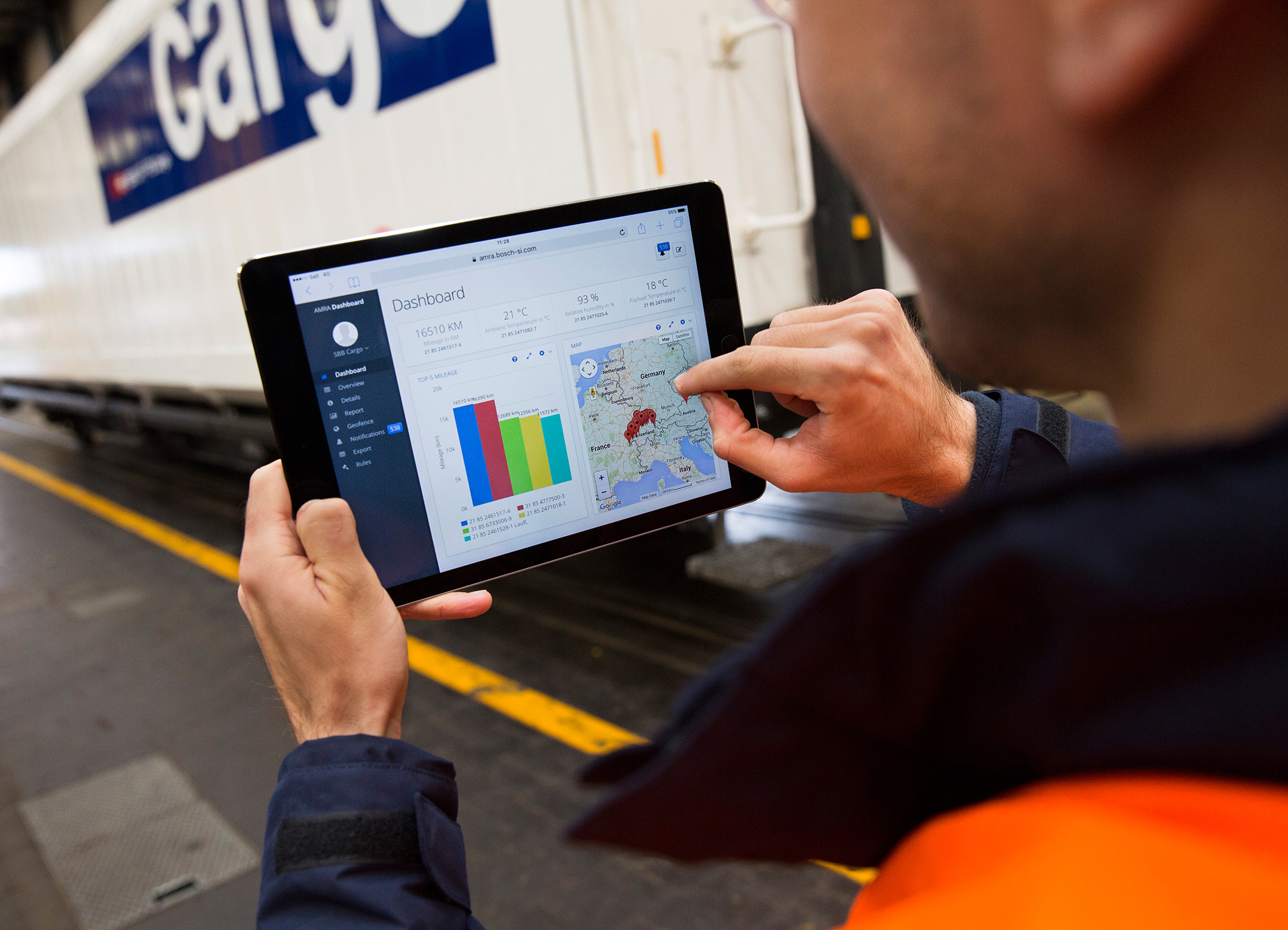 Dank intelligenter und vernetzter Sensoren erfasst das Zustandsüberwachungssystem von Bosch Echtzeit-Daten von Güterwagen und verarbeitet sie online. Damit erkennen die Waggons selbst, ob die Kühlkette eingehalten wird und wann eine Lieferung ankommt. Darüber hinaus liefern sie Informationen über den Zeitpunkt der nächsten Instandhaltung.