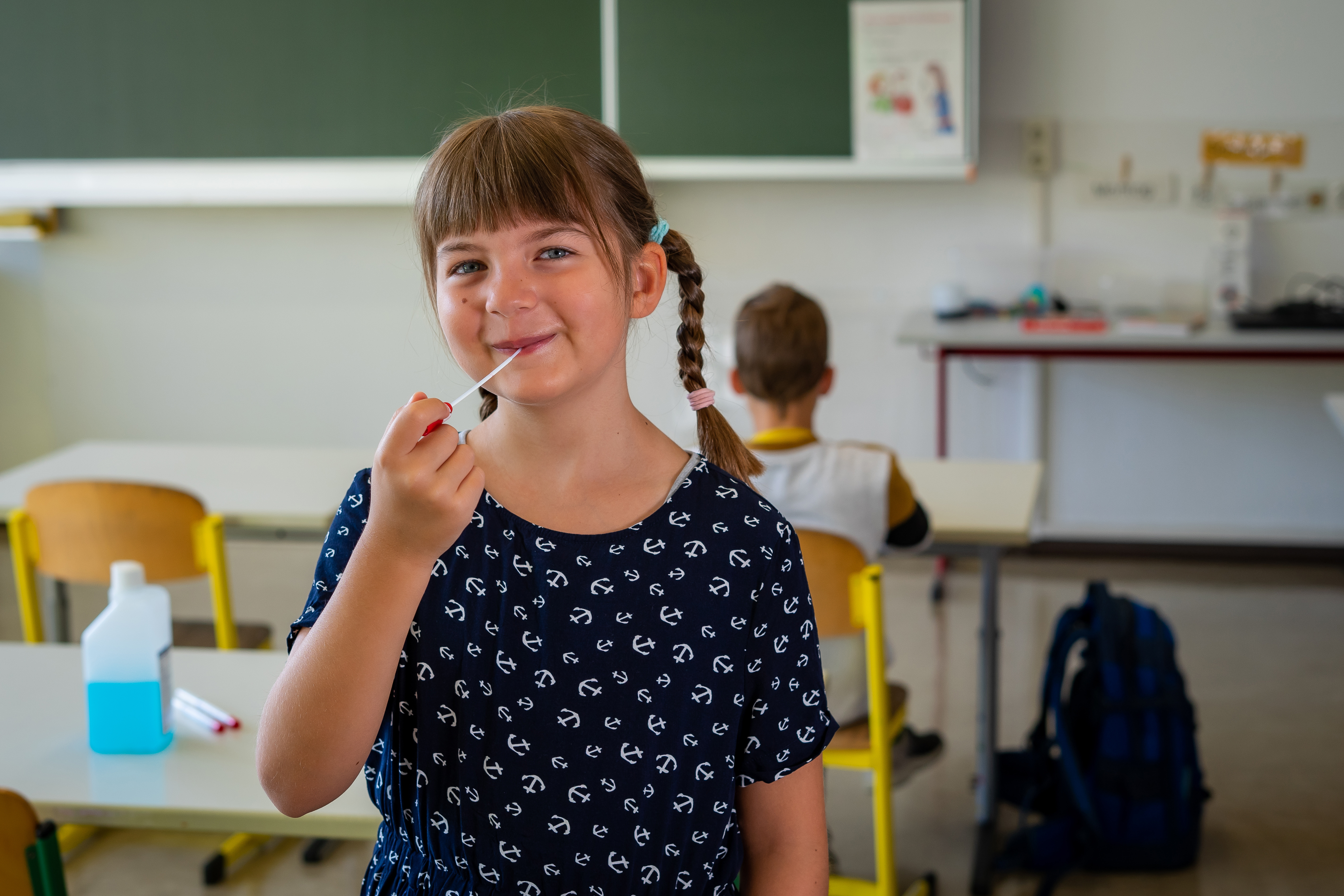 Für einen Lolli-Test wird ein Abstrichtupfer 30 Sekunden lang wie ein Lolli zwischen Zunge und Gaumen gedreht und gedrückt.