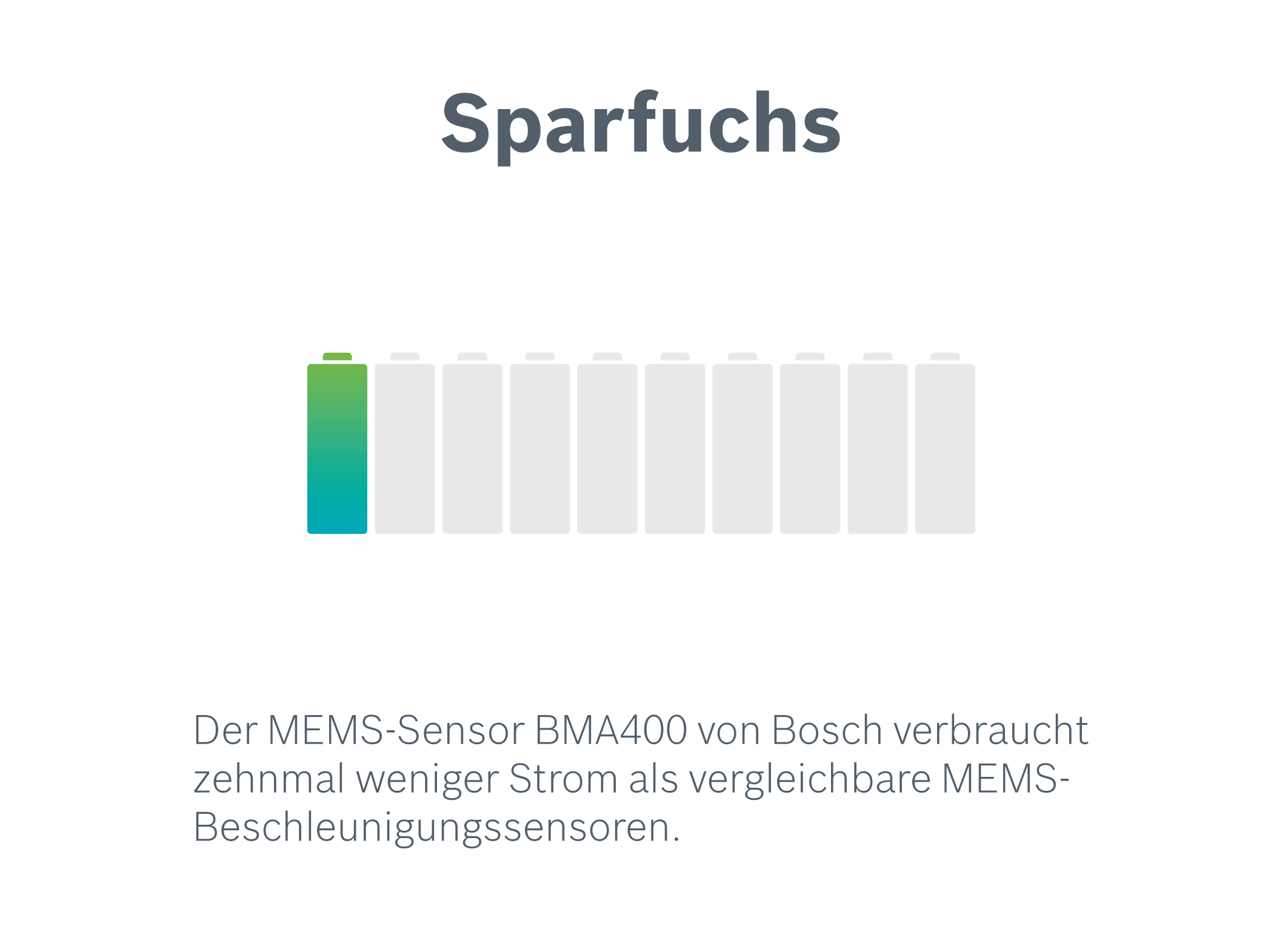 Der MEMS-Sensor BMA400 von Bosch verbraucht zehnmal weniger Strom als vergleichbare MEMS-Beschleunigungssensoren.