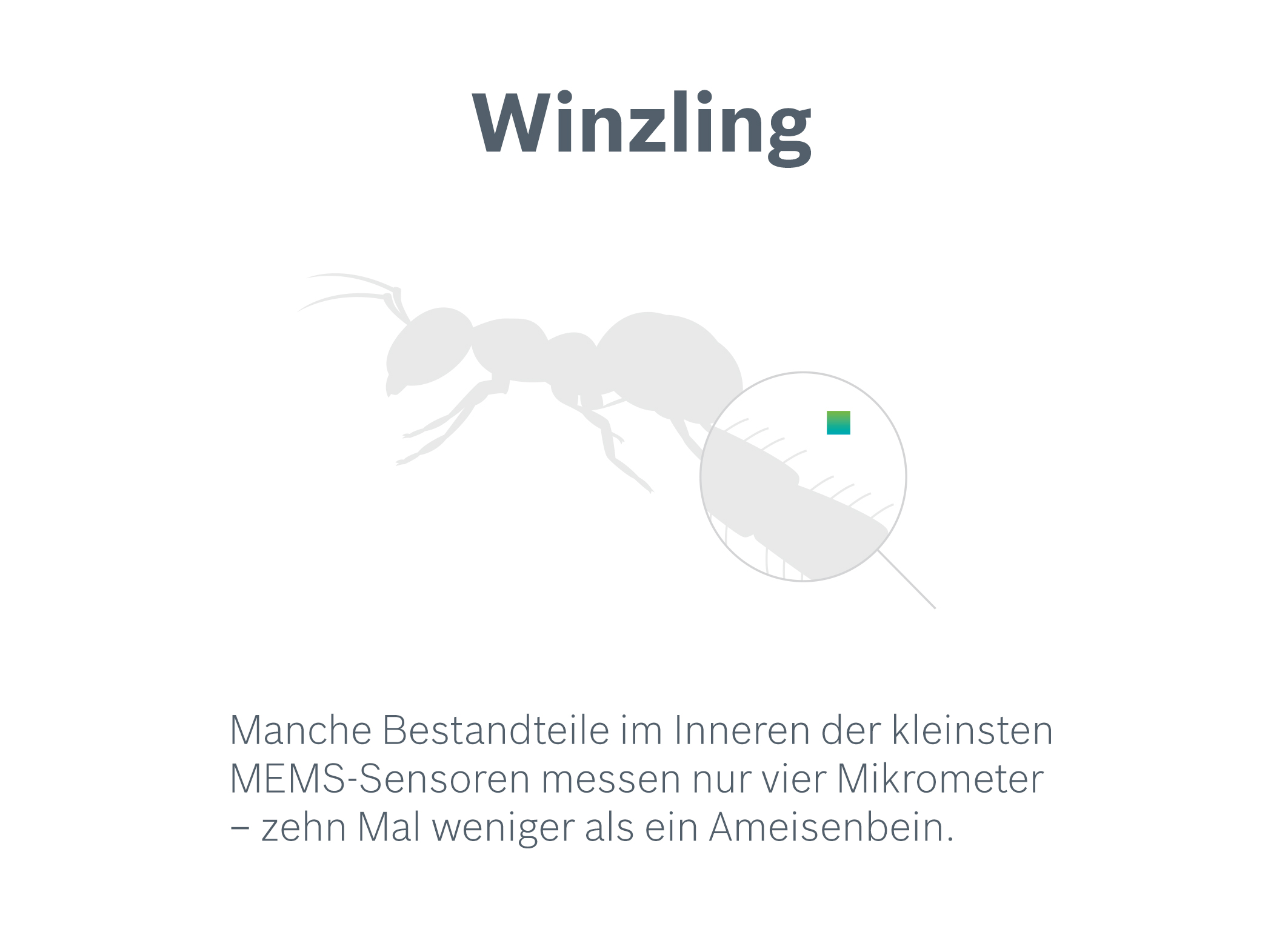 Manche Bestandteile im Inneren der kleinsten MEMS-Sensoren messen nur vier Mikrometer – zehn Mal weniger als ein Ameisenbein.