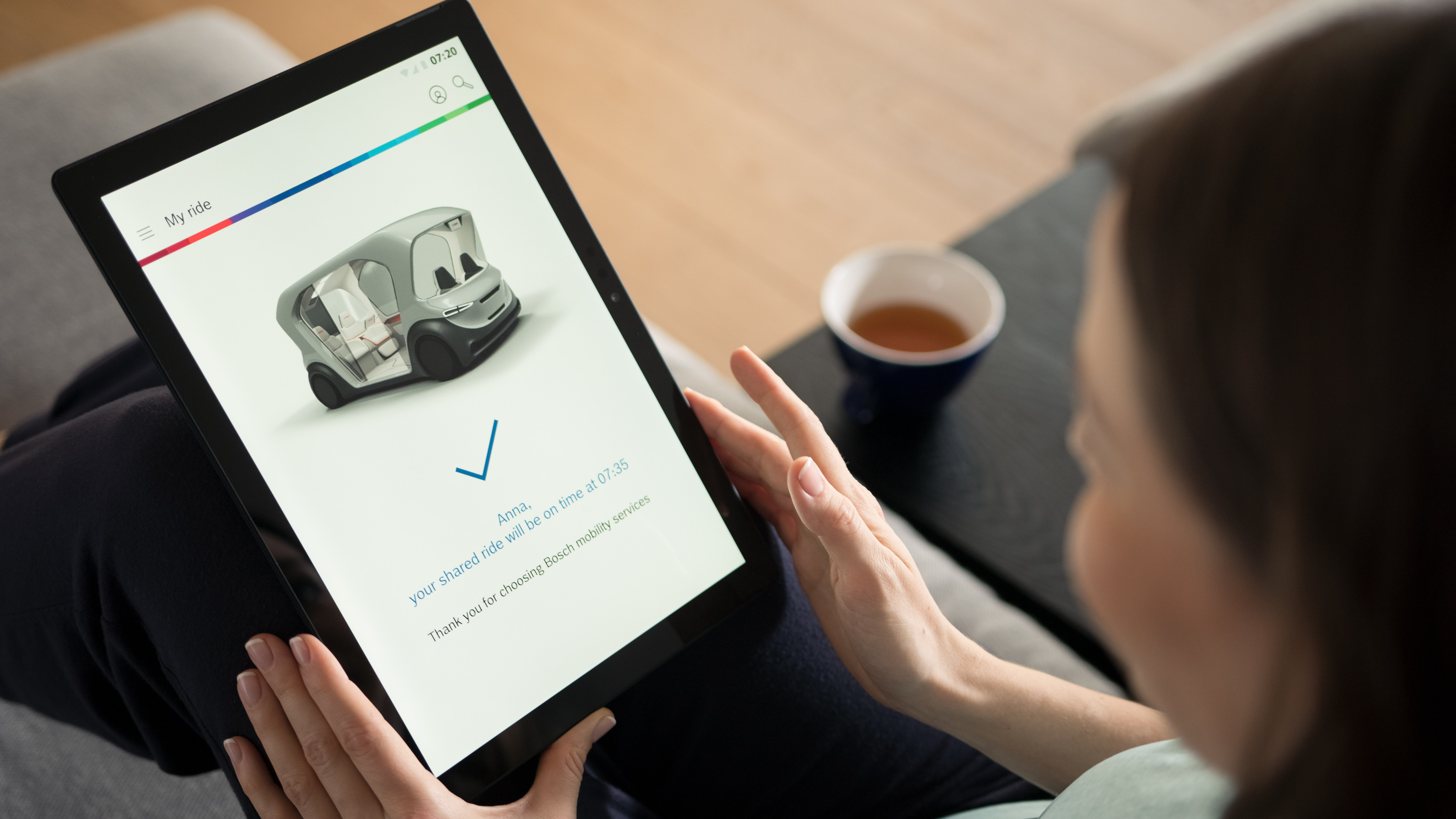 Gebucht werden die Shuttles per Smartphone, egal ob der Nutzer gerade bequem auf dem Sofa liegt oder am Arbeitsplatz sitzt. Im Hintergrund erkennt ein Algorithmus, welches Fahrzeug am schnellsten am gewünschten Standort ist und welche anderen Nutzer eine ähnliche Strecke fahren wollen. Nutzen möglichst viele Fahrgäste ein und dasselbe Shuttle, wird die Fahrt für jeden günstiger. Gleichzeitig reduziert sich das Verkehrsaufkommen in Städten und die Umwelt wird entlastet. Bosch entwickelt hierfür die notwendigen Software-Plattformen.
