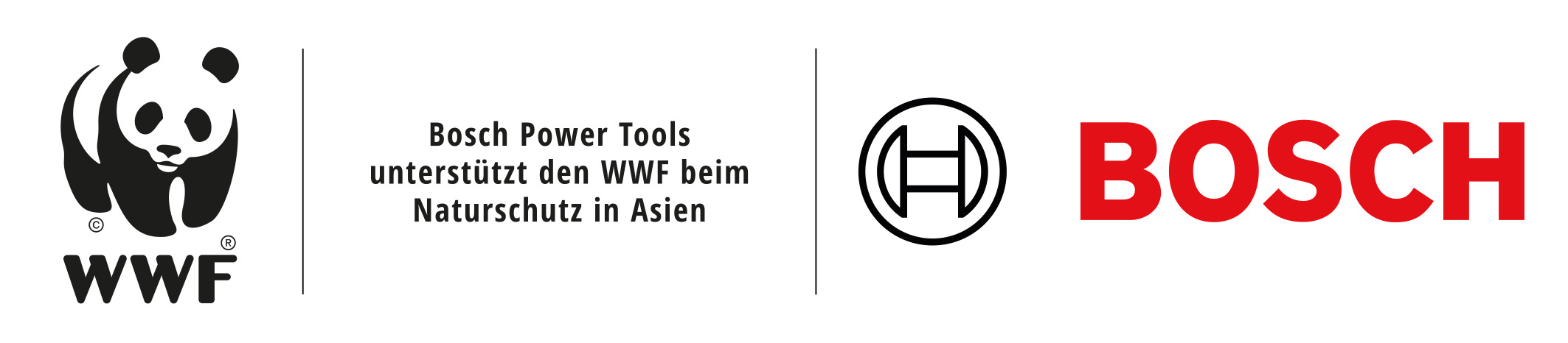 Das Kooperationslogo der Robert Bosch Power Tools GmbH und des WWF Deutschland ist rechtlich geschützt und darf in keiner Weise verändert werden. Eine Verwendung des Kooperationslogos ist nur im Kontext der Kommunikation zur Partnerschaft der Robert Bosch Power Tools GmbH mit dem WWF Deutschland zulässig.