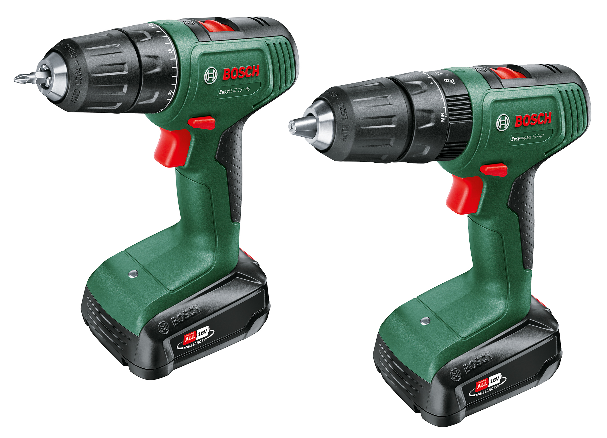EasyDrill 18V-40 und EasyImpact 18V-40 sind zuverlässige Geräte für Einsteiger und Heimwerker, die gelegentlich schrauben und bohren. Das Drill-Modell eignet sich für die Bearbeitung von Holz, Metall, Fliesen und Kunststoff, das Impact-Modell besitzt darüber hinaus eine Schlagfunktion und bohrt zusätzlich in Mauerwerk. Beide Modelle erweitern das „18V Power for All System“, das aktuell rund 40 Heimwerker-, Garten- und Haushaltsgeräte umfasst – und dank markenübergreifender „Power for All Alliance“ sogar über das Angebot von Bosch hinaus geht. Verwender sparen durch das Akku-System Platz und Geld und schonen darüber hinaus die Umwelt.