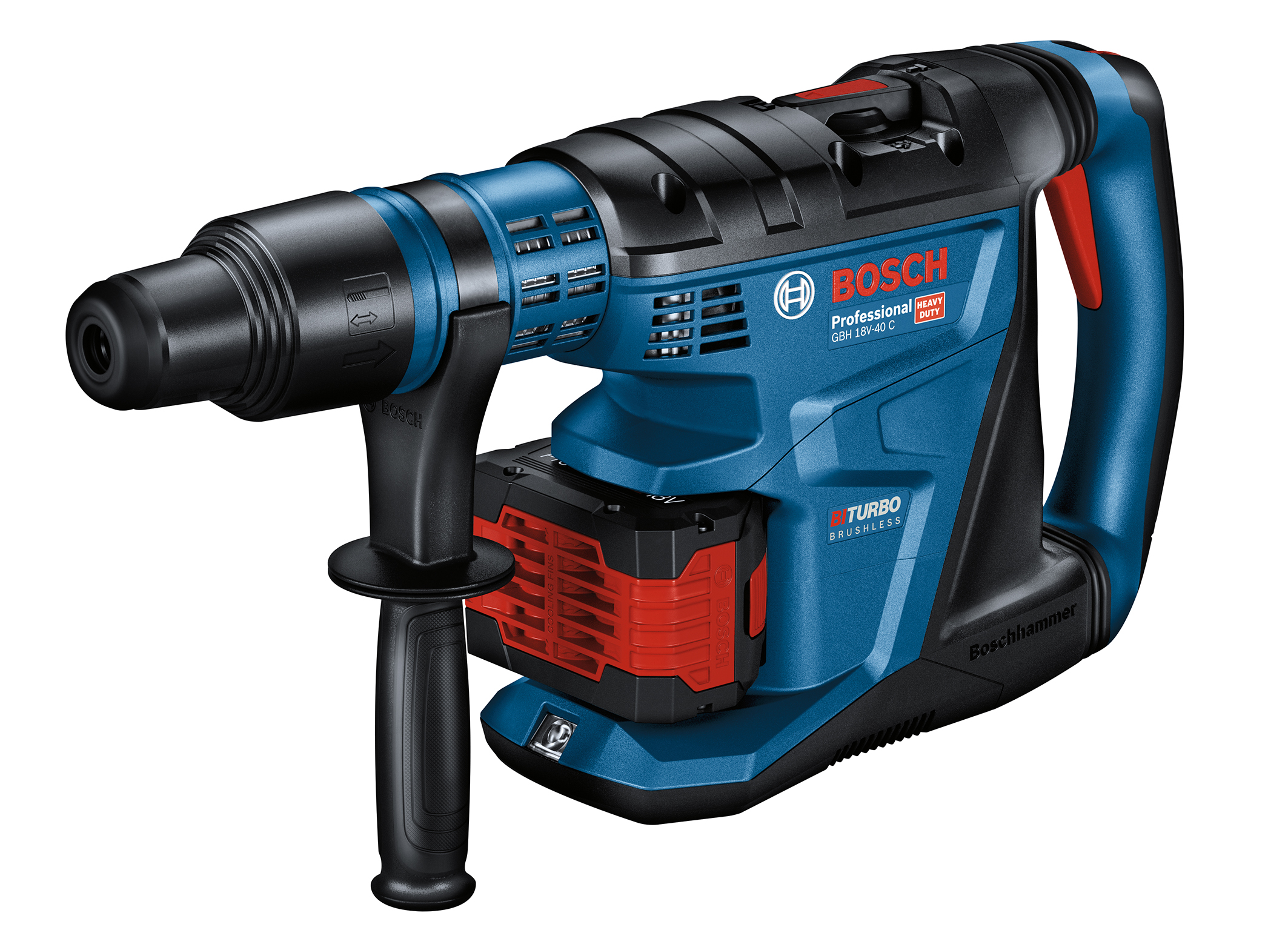 Der Biturbo-Akku-Bohrhammer GBH 18V-40 C Professional erweitert das „Professional 18V System“ von Bosch. Er bietet kabellose Freiheit mit der Leistung eines Netzgerätes und zahlreiche Komfort-Funktionen. Der Akku ist im Bereich des vorderen Griffs integriert, nicht unten wie bei vergleichbaren Geräten. Dies optimiert den Schwerpunkt und erleichtert die Handhabung. Dazu trägt auch der entkoppelte Handgriff bei, der für geringe Vibrationswerte sorgt. Das „Professional 18V System“ deckt darüber hinaus alle weiteren maßgeblichen Anwendungen mit 18 Volt ab – und geht dank herstellerübergreifender AmpShare-Allianz sogar über das Angebot von Bosch hinaus. Viele Marken, viele Maschinen, ein Akku-System: Alle Geräte lassen sich mit ein und demselben 18 Volt Lithium-Ionen-Akku und nur einem Ladegerät betreiben. Das spart Handwerkern Zeit, Platz und Geld.