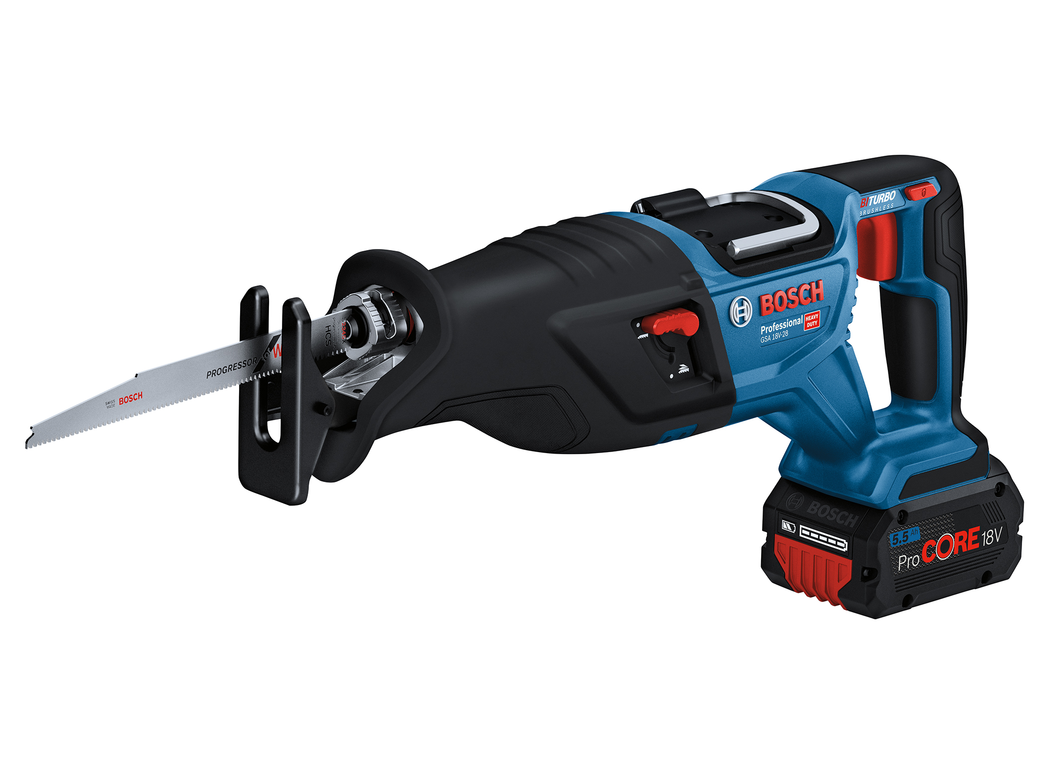 Die GSA 18V-28 Professional erweitert das „Professional 18V System“ und ist die erste Biturbo-Akku-Säbelsäge von Bosch. Sie arbeitet auf vergleichbarem Niveau eines kabelgebundenen Geräts mit 1 100 Watt und eignet sich für Abbrucharbeiten aller Art ‒ egal ob Metall, Holz, Verbundwerkstoffe oder Mauerwerk. Im Bosch-Zubehörprogramm gibt es für jede Anwendung das passende Sägeblatt. Das „Professional 18V System“ deckt darüber hinaus alle weiteren maßgeblichen Anwendungen mit 18 Volt ab – und geht dank herstellerübergreifender AmpShare-Allianz sogar über das Angebot von Bosch hinaus. Viele Marken, viele Maschinen, ein Akku-System: Alle Geräte lassen sich mit ein und demselben 18 Volt Lithium-Ionen-Akku und nur einem Ladegerät betreiben. Das spart Handwerkern Zeit, Platz und Geld.