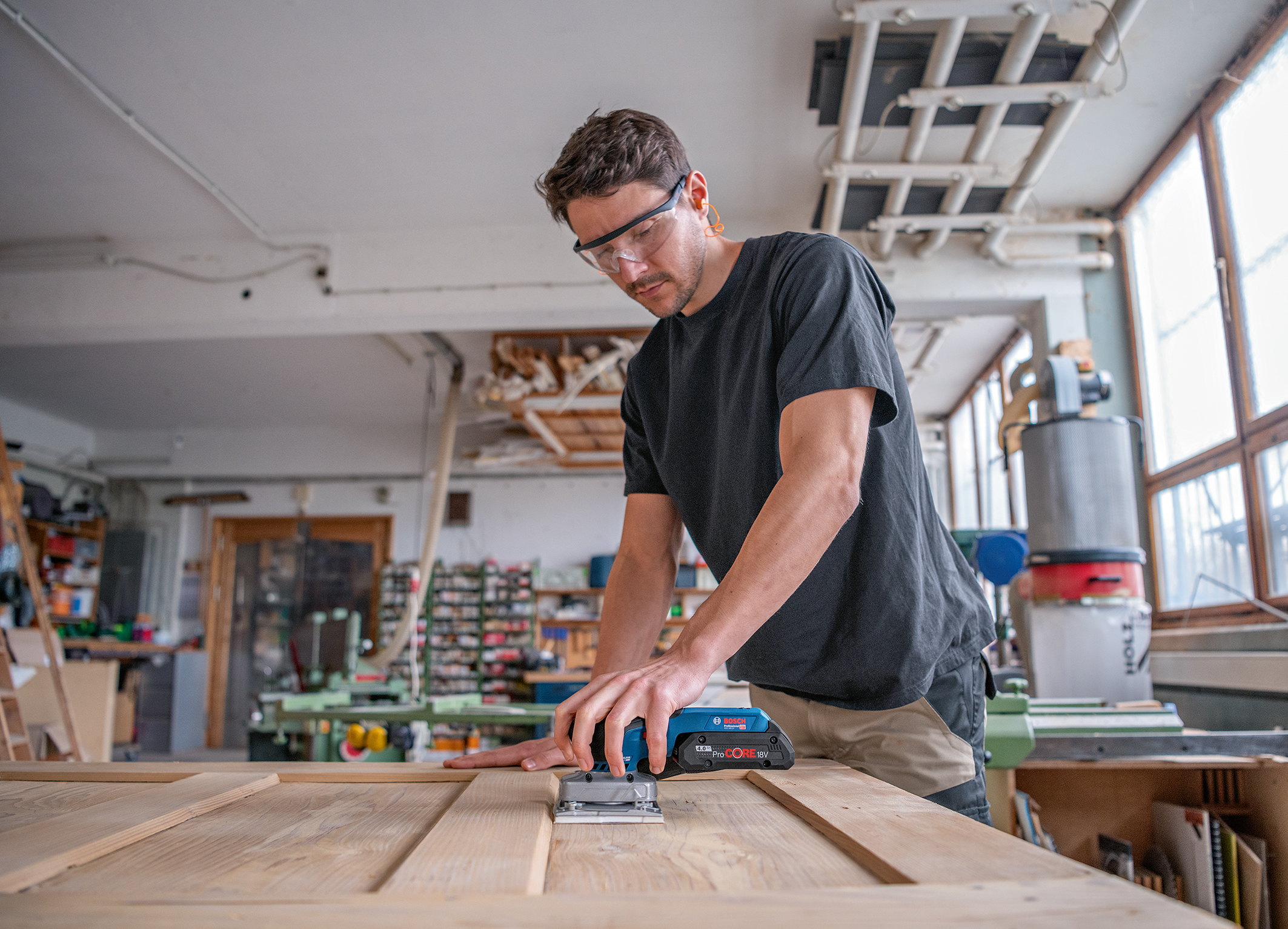 Der GSS 18V-13 Professional aus dem „Professional 18V System“ eignet sich für die Bearbeitung größerer Flächen und bei längerer Anwendungsdauer. Für eine optimale Geräte-Balance und einen effizienten Arbeitsprozess empfiehlt Bosch einen ProCore18V-Akku mit 4,0 Ah. Der GSS 18V-13 Professional bietet ‒ wie das 12 Volt-Gerät – höhere Flexibilität beim Schleifen als vergleichbare Wettbewerber-Modelle. Grundlage dafür sind drei unterschiedliche Fußplatten, mit denen Profis ihre Schwingschleifer schnell und einfach auf die jeweilige Arbeitssituation umrüsten können: eine quadratische, eine rechteckige und eine dreieckige Schleifplatte. In Kombination mit den bereits erhältlichen Akku-Exzenterschleifern GEX 12V-125 Professional und GEX 18V-125 Professional für das Schleifen größerer Flächen bieten die Schwingschleifer Handwerkern ein optimal aufeinander abgestimmtes System.
