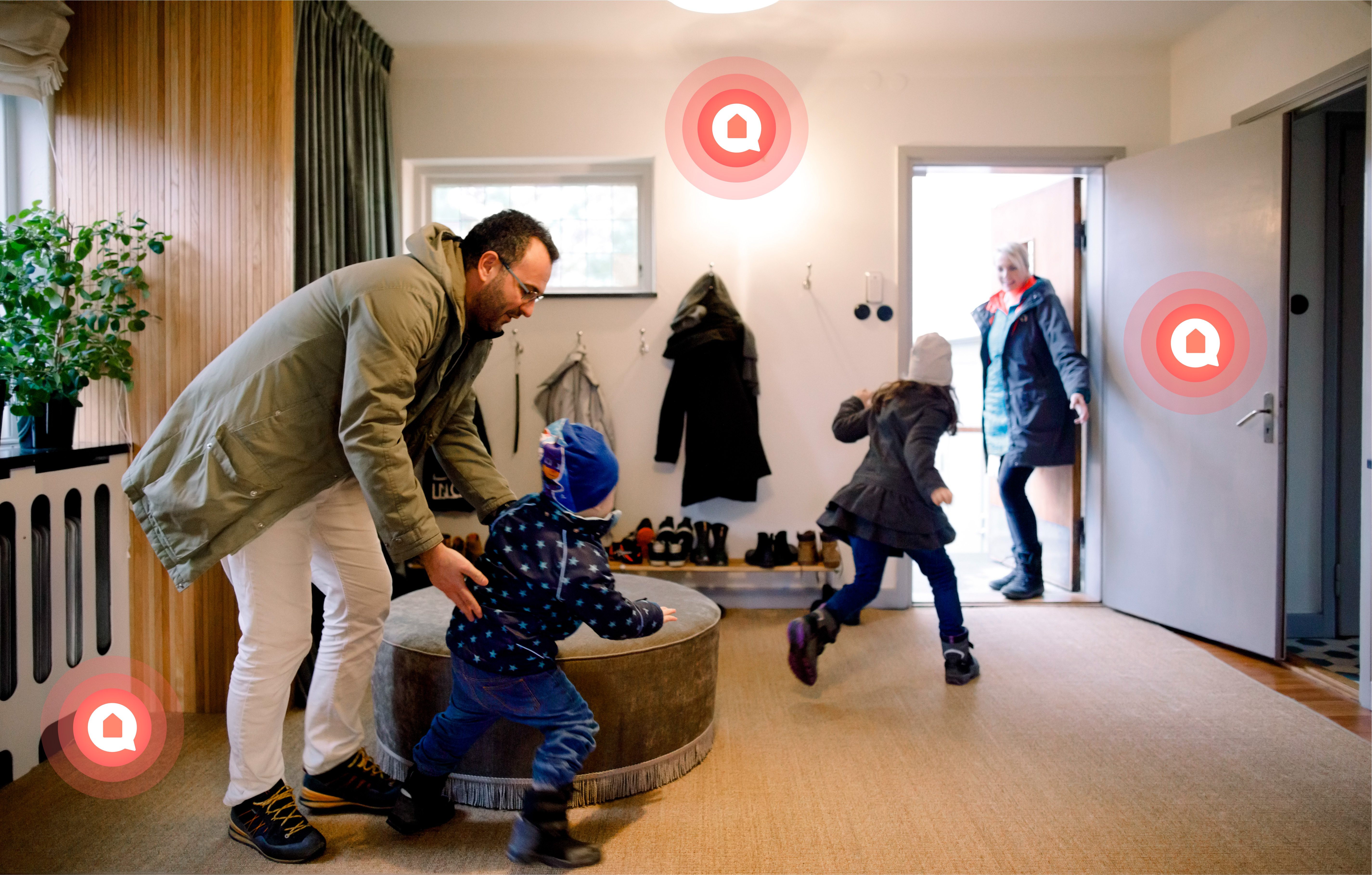 Mit Home Connect Plus Automationen kann das Smart Home in ein „Haus verlassen“ Zustand versetzt werden, indem z. B. Lichter ausgeschaltet und das Arlamsystem aktiviert werden. So können Nutzer von Home Connect Plus sorgenfrei das Haus verlassen.