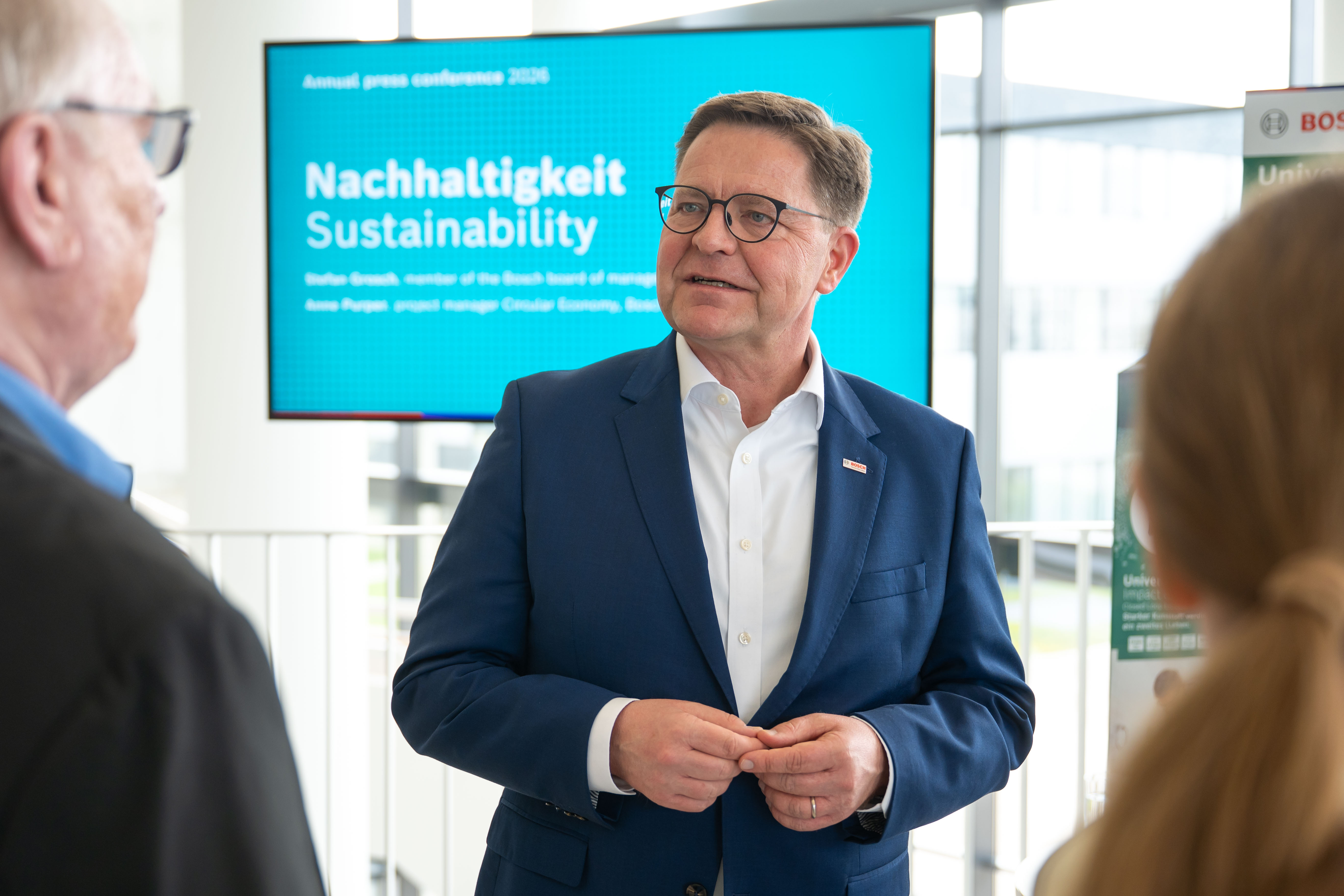 Stefan Grosch, Mitglied der Bosch-Geschäftsführung, in der Ausstellung „Innovation at Bosch“, bei der Jahrespressekonferenz 2026.