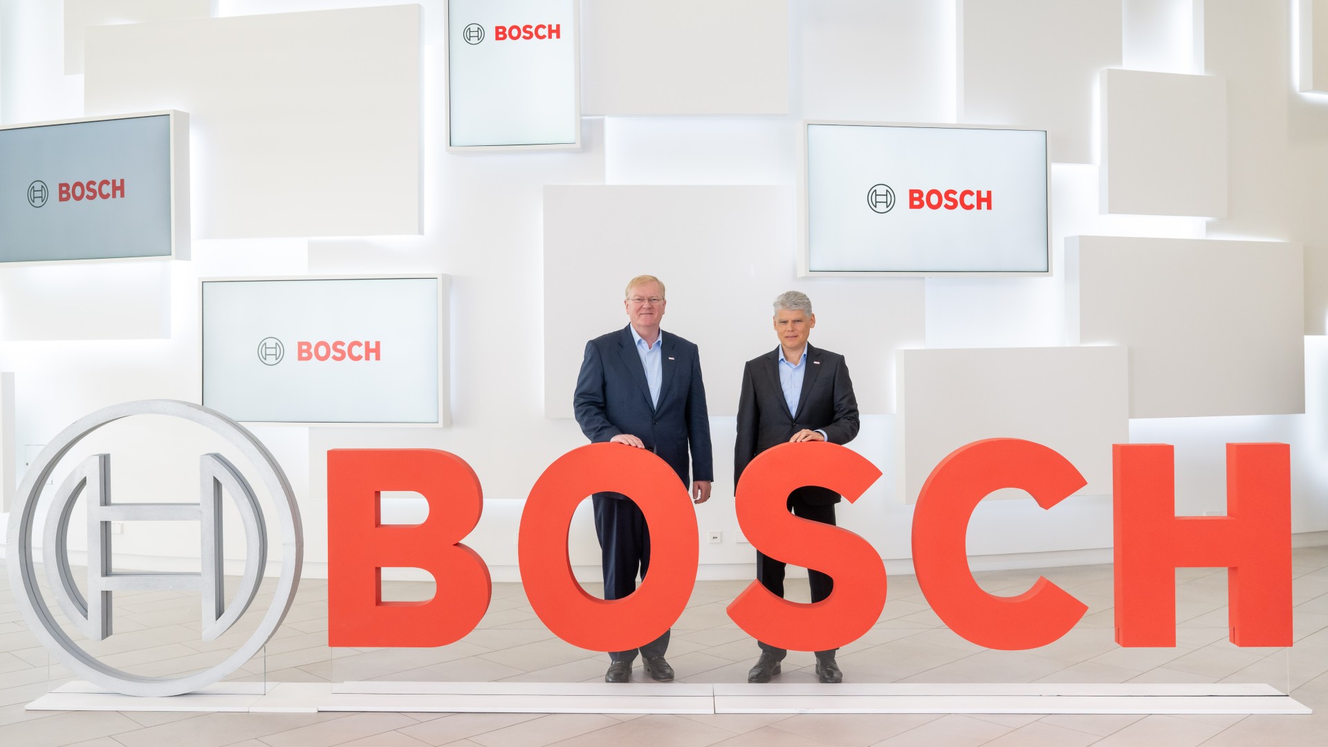 Stefan Hartung, Vorsitzender der Geschäftsführung der Robert Bosch GmbH, (links) und Markus Forschner, Geschäftsführer und Finanzchef der Robert Bosch GmbH, bei der Bilanzpressekonferenz 2025.