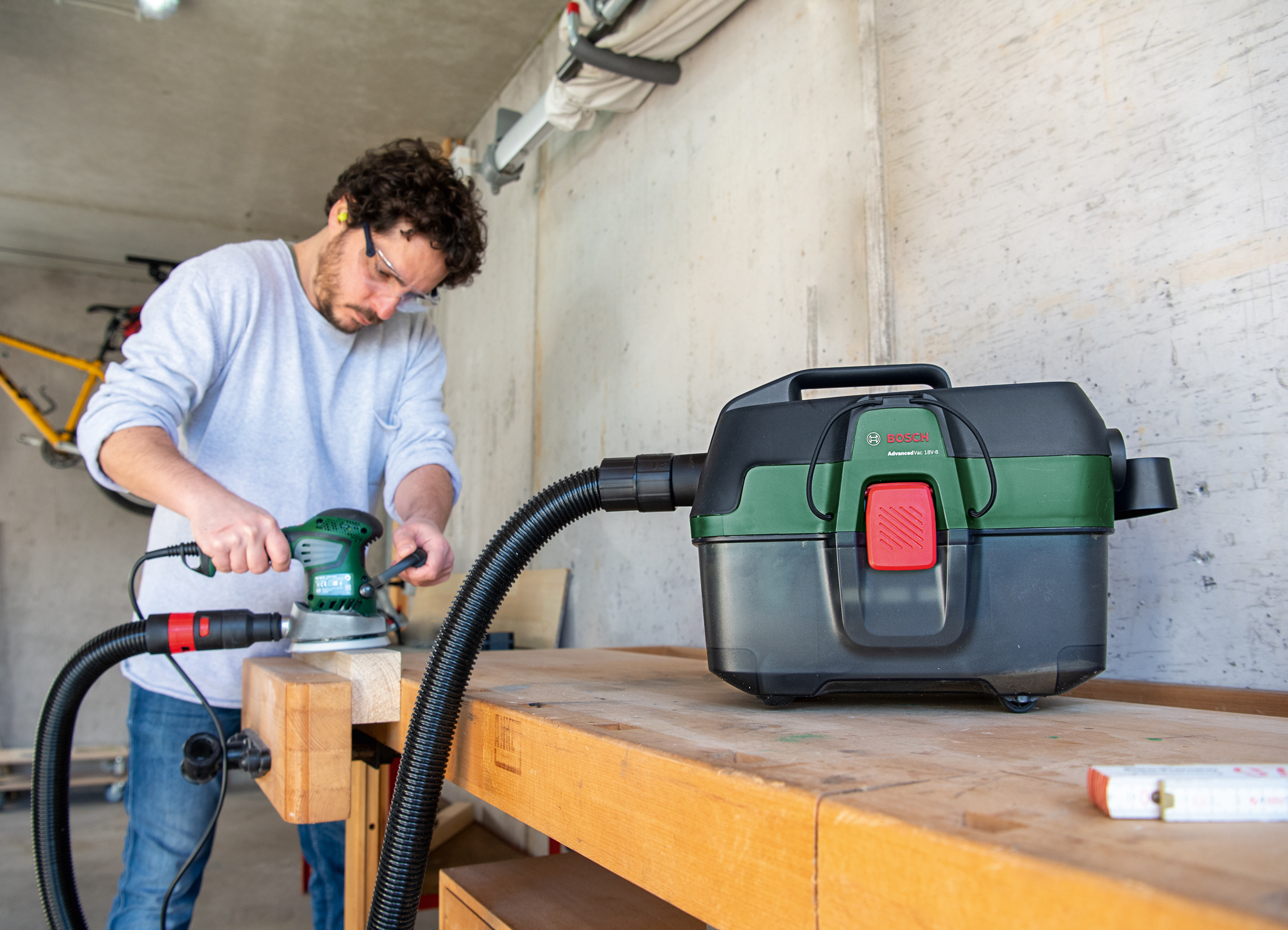 Der AdvancedVac 18V-8 ist dank integrierter Rollen und umfangreichem Zubehör vielseitiger als herkömmliche Nass-/Trockensauger für Heimwerker. Er bringt gleichzeitig auch noch einen Universaladapter mit, der den Anschluss an viele unterschiedliche Elektrowerkzeuge ermöglicht. Dann saugt der AdvancedVac 18V-8 den Staub direkt dort ab, wo er entsteht und minimiert das lästige Putzen nach dem Sägen. Der Eco-Modus verlängert die Akku-Laufzeit und ist besonders für leichtere Sauganwendungen geeignet.