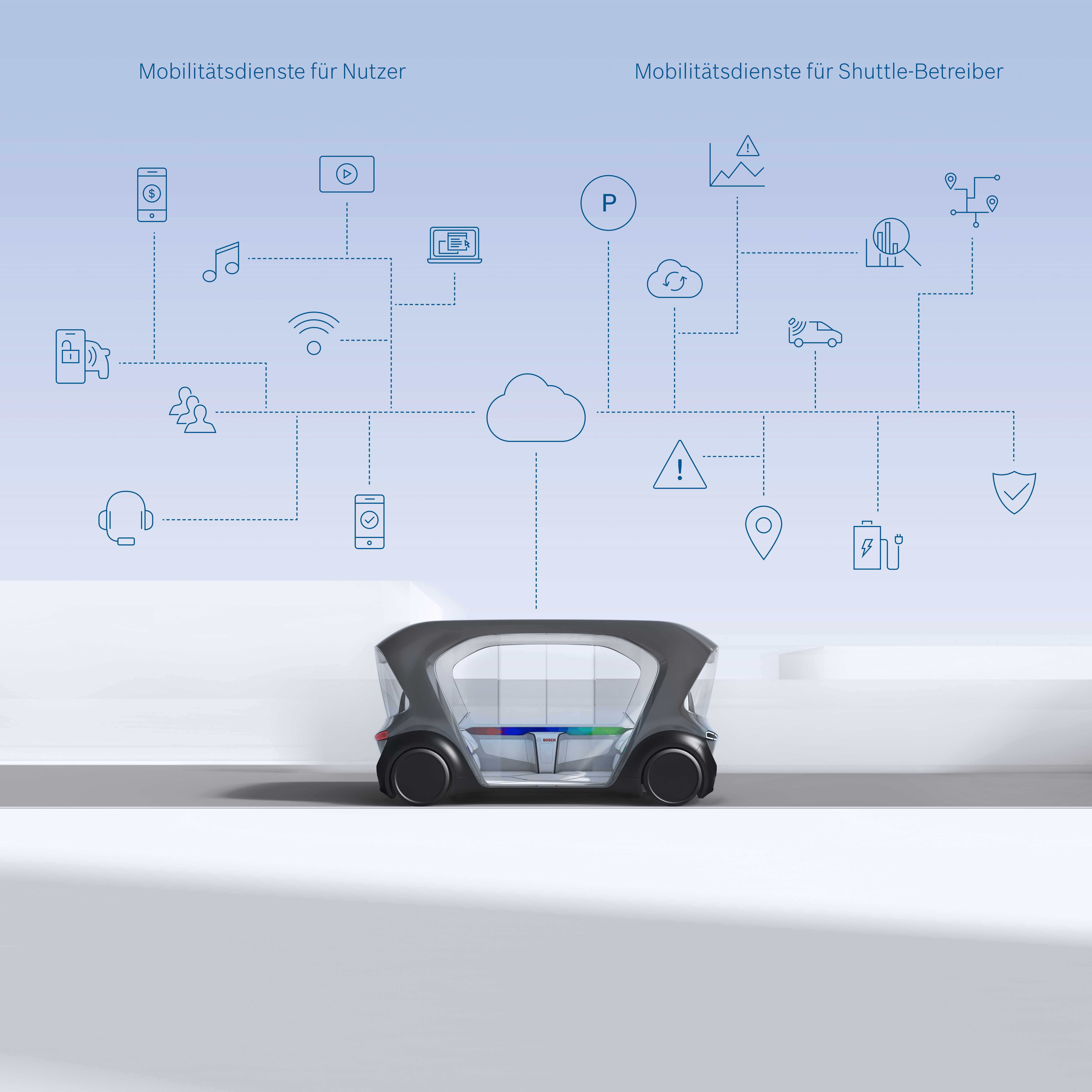 Für die Shuttle-Fahrzeuge liefert Bosch Komponenten und Systeme für die Automatisierung, Vernetzung und Elektrifizierung. Möglich wird die Shuttle-Mobilität jedoch erst mit Mobilitätsdiensten. Auch diese wird das Unternehmen künftig anbieten und bündelt sie in einem intelligenten und nahtlos vernetzten Ecosystem.