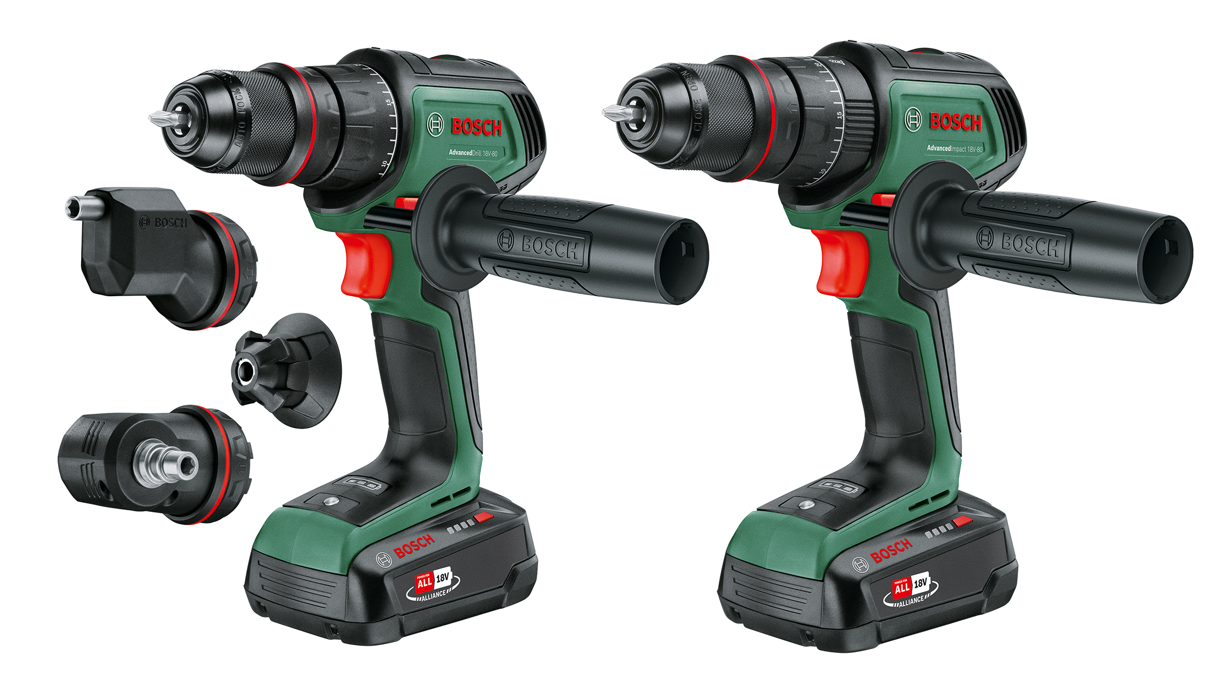 Mit dem neuen AdvancedDrill (links) und AdvancedImpact 18V-80 QuickSnap (rechts) von Bosch können Heimwerker auch an engen oder verwinkelten Stellen mühelos schrauben und bohren – und das noch kraftvoller als bisher. Der Akku-Bohrschrauber und der Akku-Schlagbohrschrauber sind Teil des „18V Power for All Systems“ von Bosch. Die beiden Akku-Schrauber bieten immer die optimale Leistung und die maximale Ausdauer für jedes Projekt. Grundlage dafür ist die optimale Abstimmung aller maßgeblichen Bauteile wie Motor und Getriebe in Kombination mit einer intelligenten Steuerungselektronik, der „Syneon-Technologie“. Dieses Zusammenspiel aus Motorelektronik und Akku bietet nur Bosch. Sie behalten darüber hinaus ihre volle Leistung bei, bis der Akku leer ist. So können Heimwerker bis zum Schluss kraftvoll bohren und schrauben.