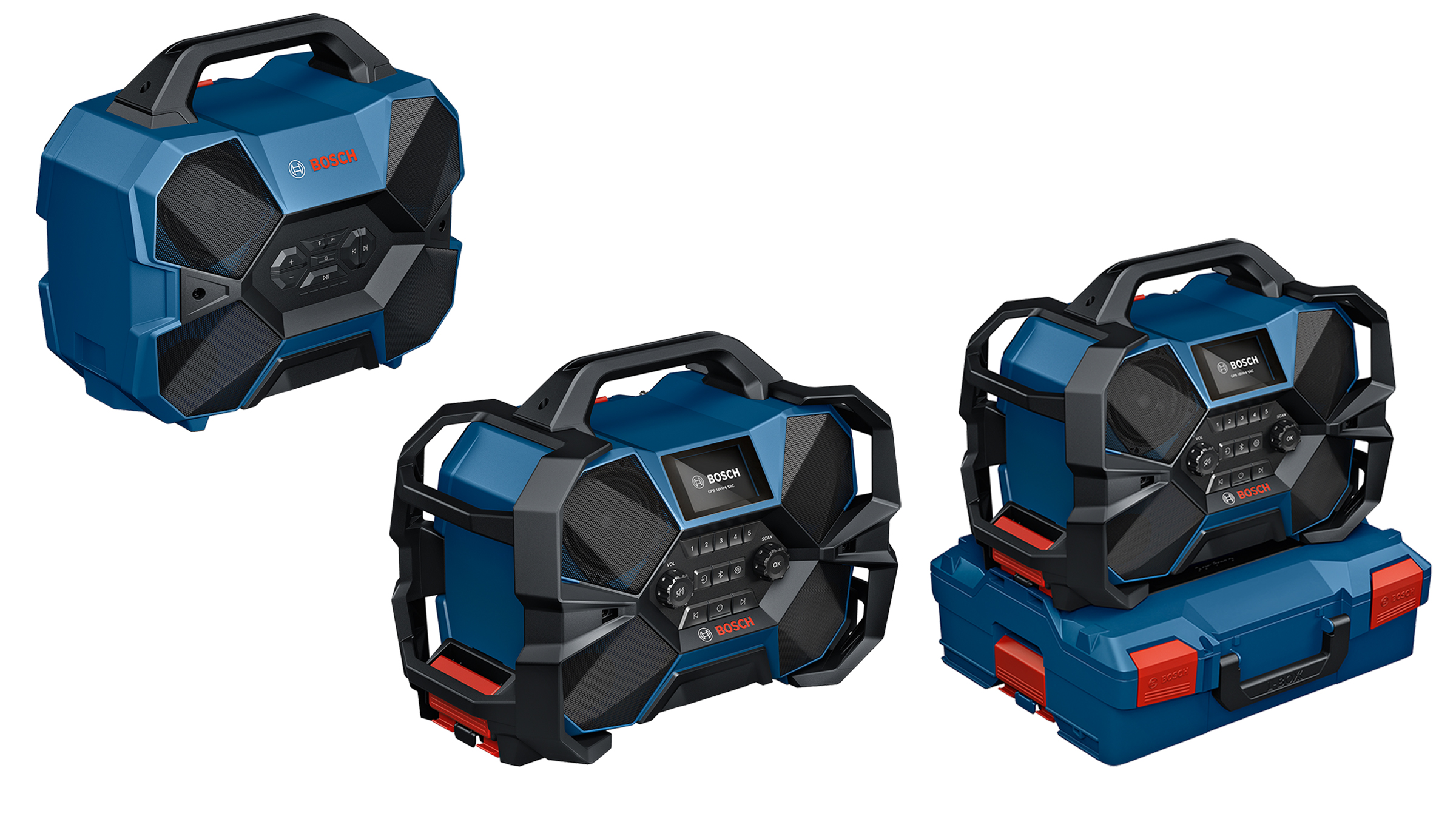 The GPB 18V-6 C Professional (left) is the first ever Bluetooth® speaker from Bosch, while the GPB 18VH-6 SRC Professional (center and right) heralds a new generation of jobsite radios featuring DAB+ and FM radio, AUX input, and Bluetooth® connectivity. The robust devices are certified IP54 dust- and splash-resistant with a sealed battery compartment when running on cordless power. They are also compatible with the Professional 12V System, the Professional 18V System and the multi-brand AmpShare battery alliance. The protective frame that comes with the radio makes it particularly resistant to rough conditions. It can be stacked with an L-Boxx coupling latch and carried across the jobsite together with other tools. Both devices are built to the same specifications and deliver crystal-clear tones and full-bodied bass with 88 watts and a 40-watt subwoofer for an unrivalled music experience – and not just on the jobsite, either.