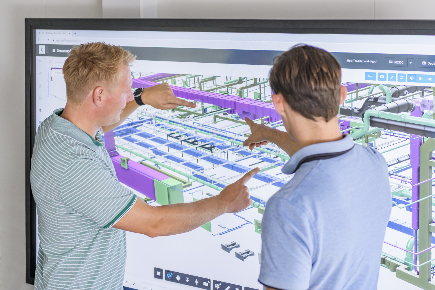 Architects at work: using a 3D model, they check to make sure that no cables or lines will collide in the design.