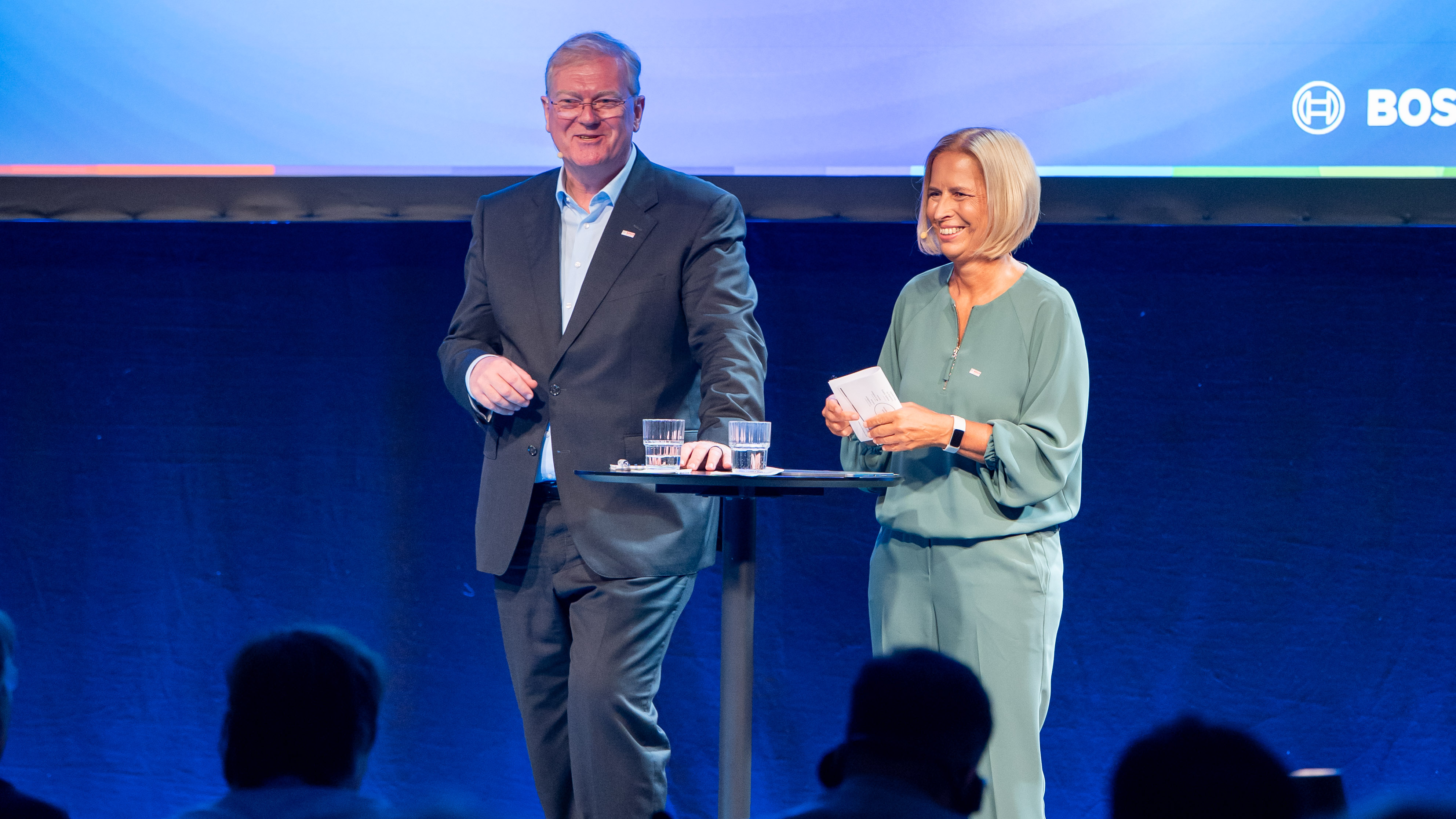 Dr. Stefan Hartung, Chairman of the board of management of Robert Bosch GmbH and Dr. Tanja Rückert, member of the board of management, Robert Bosch GmbH, at Bosch Tech Day 2025 in Feuerbach.