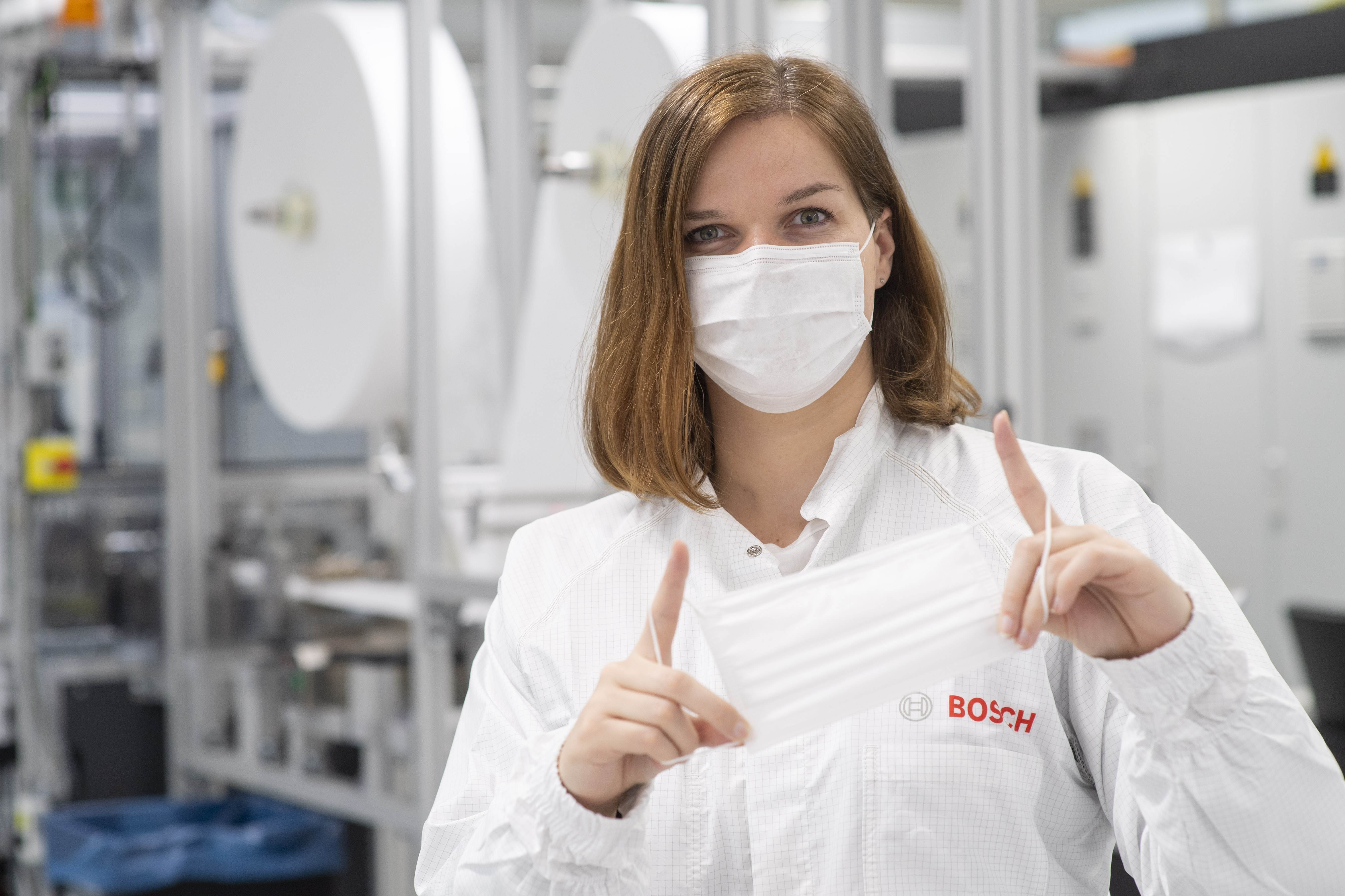 At the Bosch plant in Stuttgart-Feuerbach, the project manager Heike Wurst explains how the line works. From the provisioning of materials to the final product, the process comprises seven steps. Within eight weeks, the project team designed the special-purpose machinery and put it into operation.