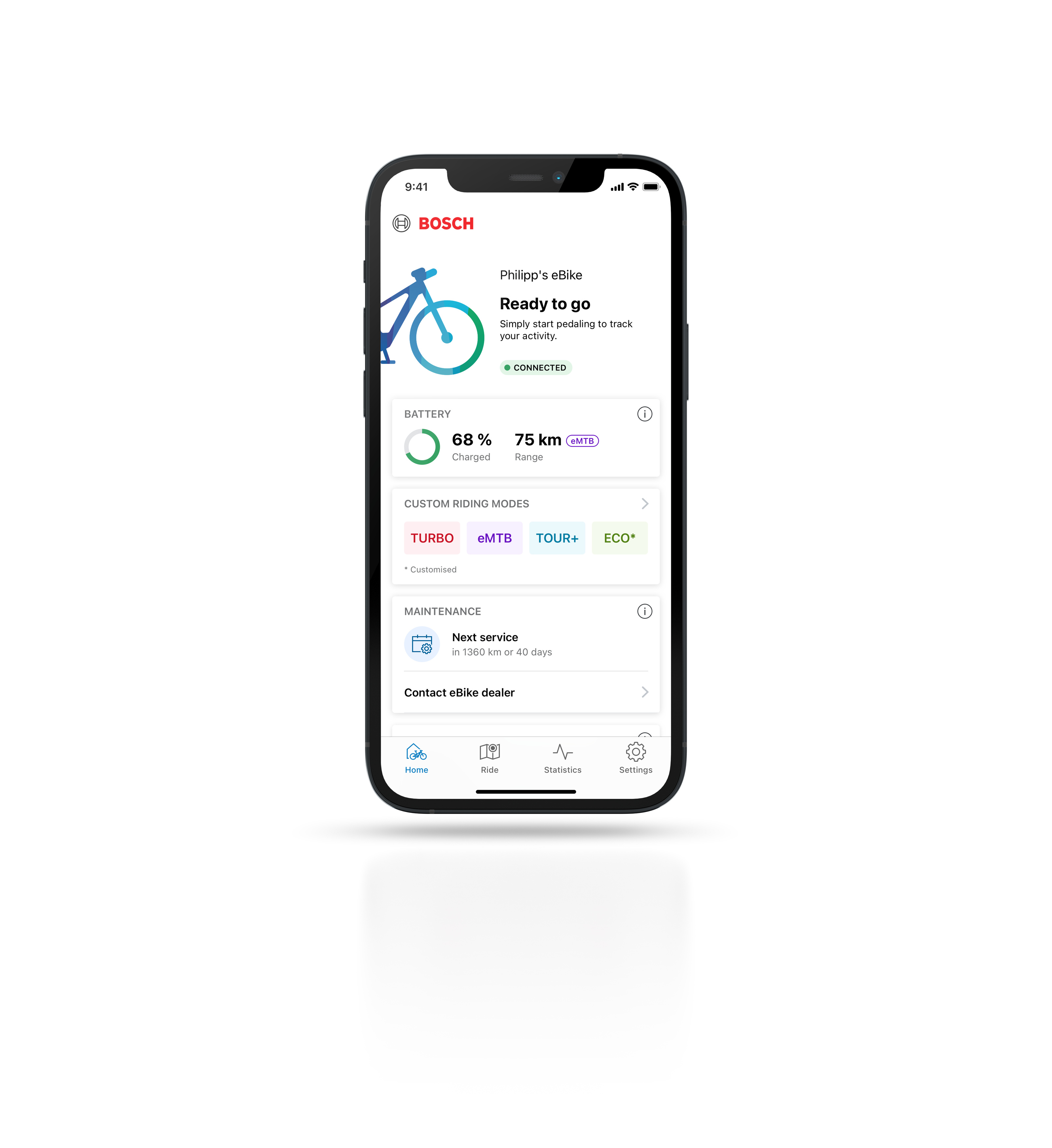 eBike manufacturers can choose whether the eBike Flow app is displayed to their customers as the standard version or as a customised brand variant. Thanks to the digital services of Bosch eBike Systems, it is now possible to prominently place own-brand content here.